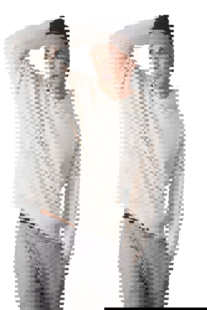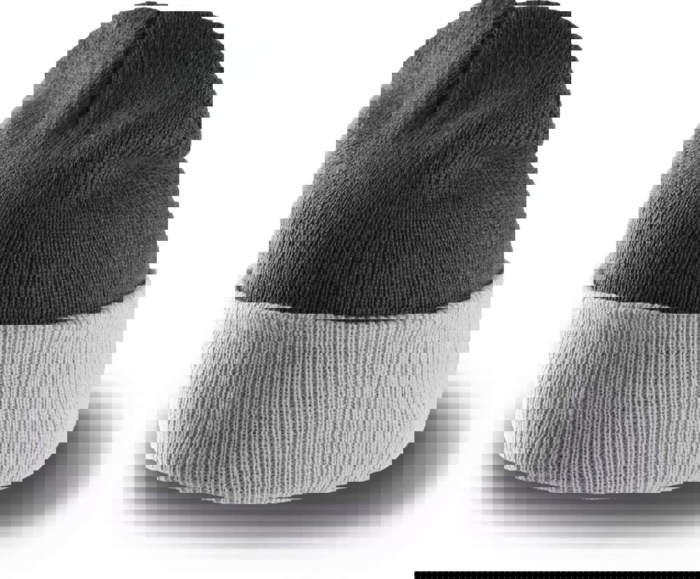 100% acryl. Gebreide muts met omslag in contrastkleur.