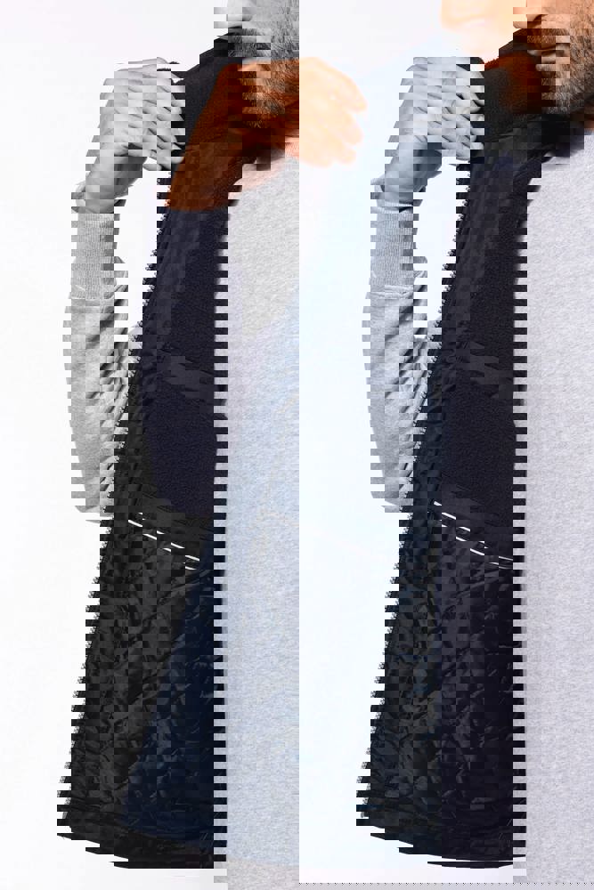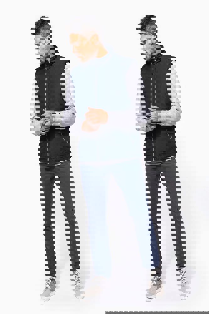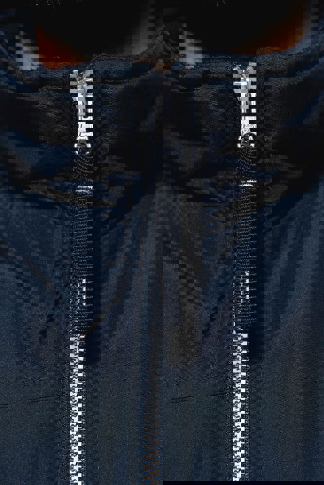 Buitenkant van 100% polyester met PVC inductie. Samengestelde voering van polyamide, polyester en polyesterwatten. Kangoeroezakken met rits aan de voorkant. Ritssluiting. Fleecevoering en wattering aan de bovenzijde en aan de kraag. Polyamidevoering aan de onderzijde. Binnenzak voor GSM. Afgeronde onderkant. Elastisch aanrijgkoord met stopper onderaan. Drukkersrits.