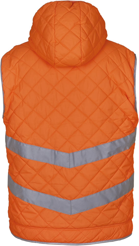 100% waterafstotend polyester, met fleecevoering en wattering in 100% polyester. 2 reflecterende v-vormige stroken (5 cm breed) op het lichaam, voor een betere zichtbaarheid. Opstaande kraag met ingewerkte kinbescherming. Borstzakje met rits. 2 handverwarmende ritszakken opzij. 1 opgenaaide zak in de vaste fleecevoering. Reflecterende bies onderaan het kledingstuk. Blinde drukkersrits onderaan het kledingstuk (binnenkant). Conform aan de norm EN ISO 20471:2013 van klasse 2 (enkel kleuren Hi-Vis Yellow en Hi-Vis Orange) en aan de norm inzake signalisatiekledij van de spoorwegen UK GO/RT 3279 Issue 8:2013 (enkel Hi-Vis Orange).