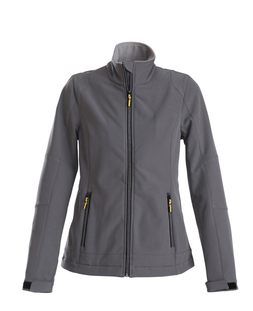 Softshell jas met tweekleurige ritssluiting vooraan en zijzakken met ritssluiting. Aanpasbare mouwen met velcrosluiting en trekkoorden aan de boord onderaan. De zippullers kunnen indien gewenst vervangen worden door één van de andere beschikbare kleuren.