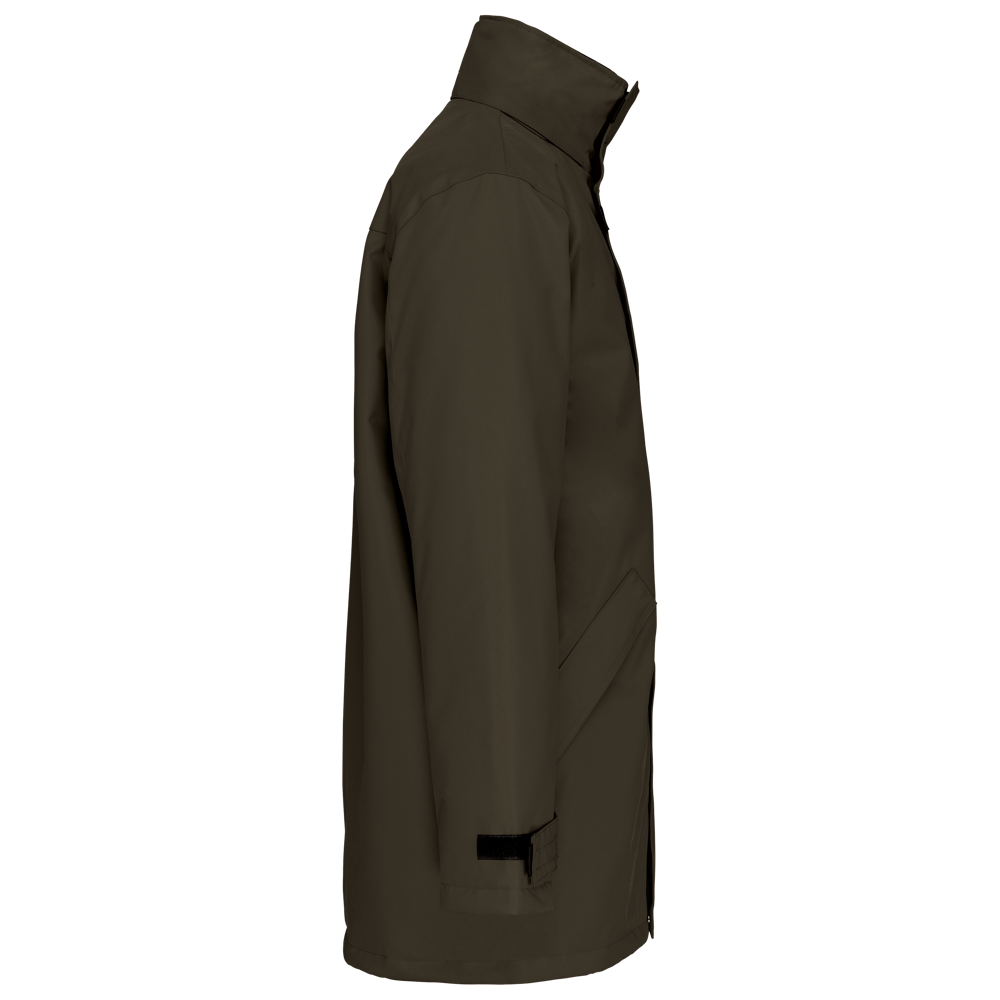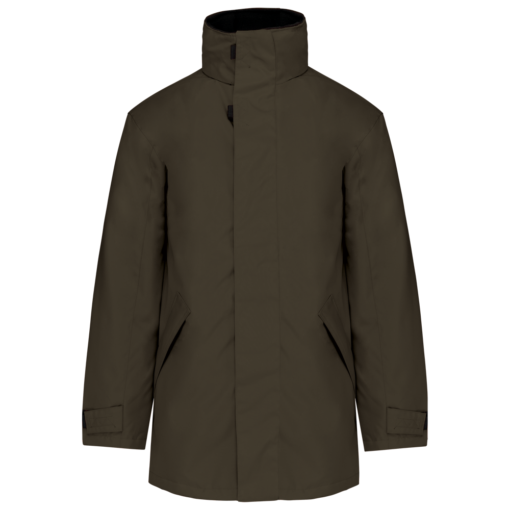 Buitenkant: 100% oxford polyester. Binnenkant: gewatteerd polyester. 2 voorzakken met rits. 2 binnenzakken waarvan 1 voor de GSM. Capuchon verborgen in de kraag. Kraag met fleecevoering. Drukkersrits. Ritssluiting verborgen onder een lijst met drukknopen en klittenband. Verstelbare mouwuiteinden met klittenband.
