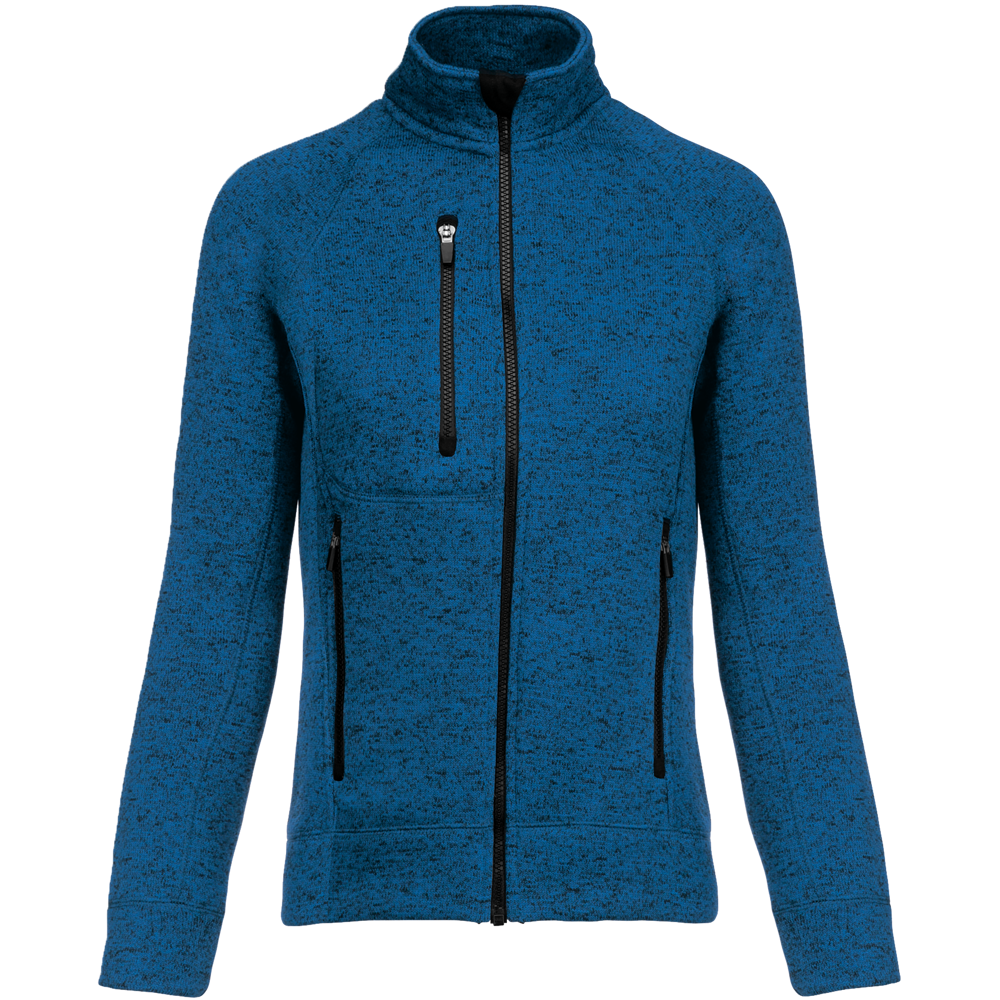 Geborstelde binnentricot 100% polyester. Raglanmouwen. Ritssluiting. 2 contrasterende ritszakken aan de voorkant en 1 contrasterende borstzak met rits. Overlocksteek op de inzetstukken. Heel comfortabele snit en stof.