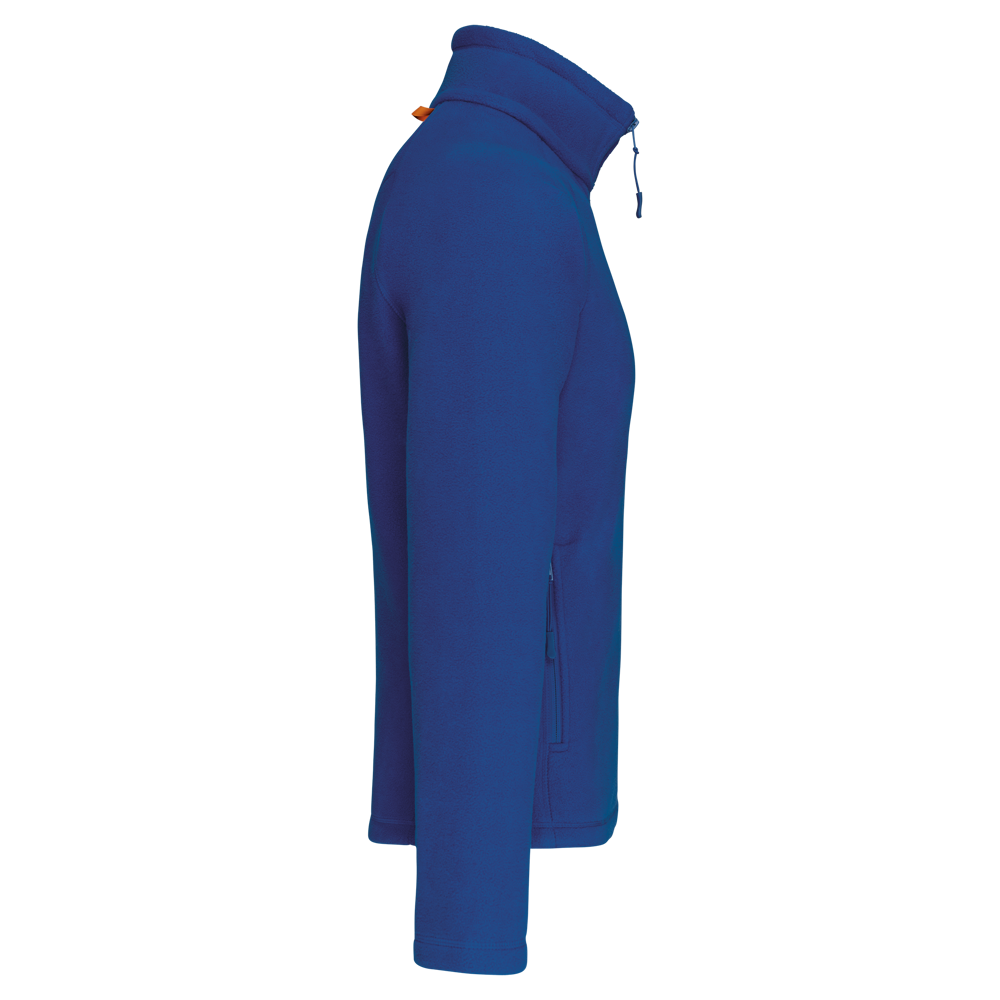 100% polyester microfleece met anti-pilling behandeling. Raglan mouwen. Ritssluiting. 2 voorzakken met rits. 2 binnenzakken. Aanrijgkoord. Afwerkingsbiesjes aan de binnenzakken en bandje rond de hals in contrastkleur.