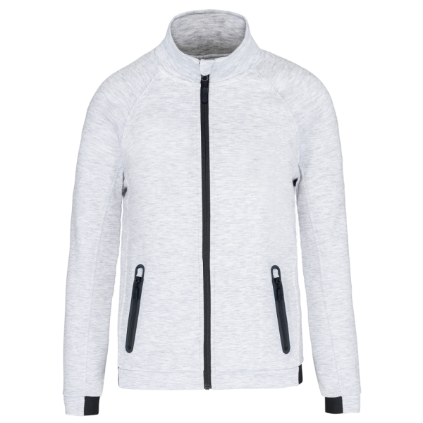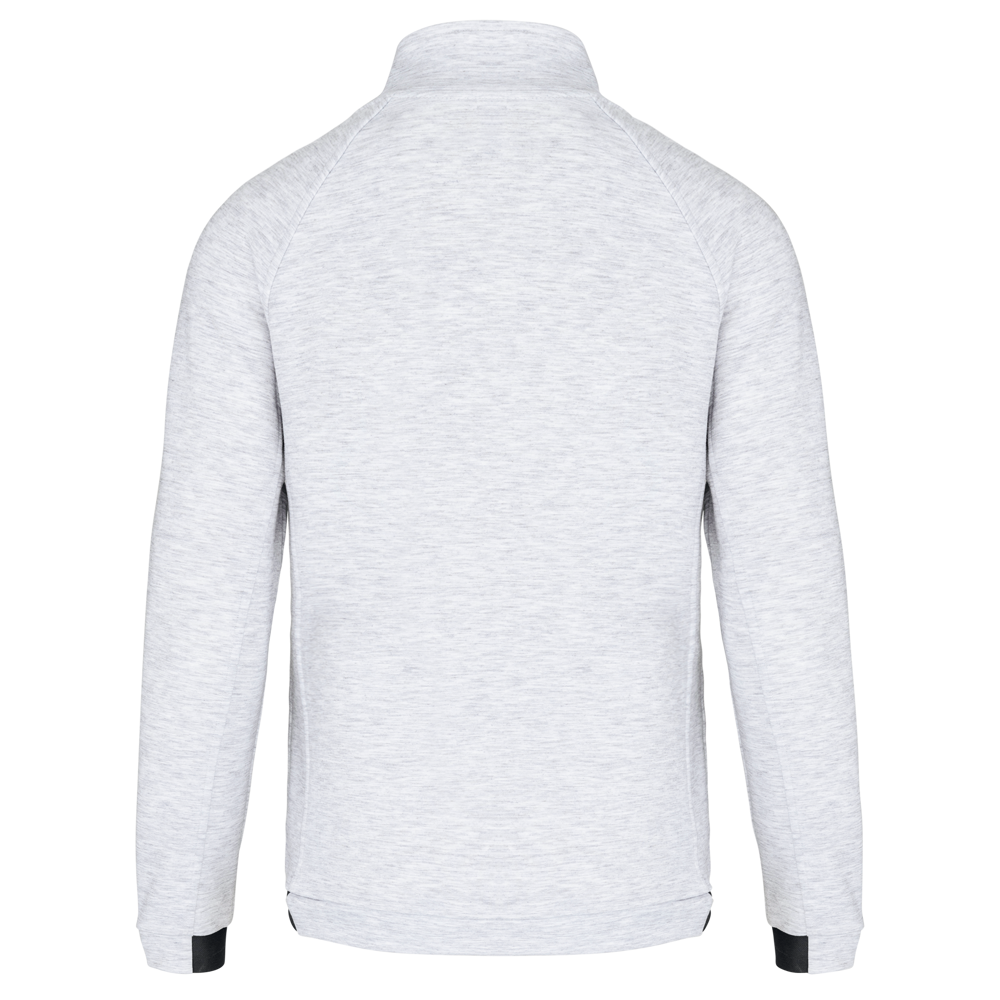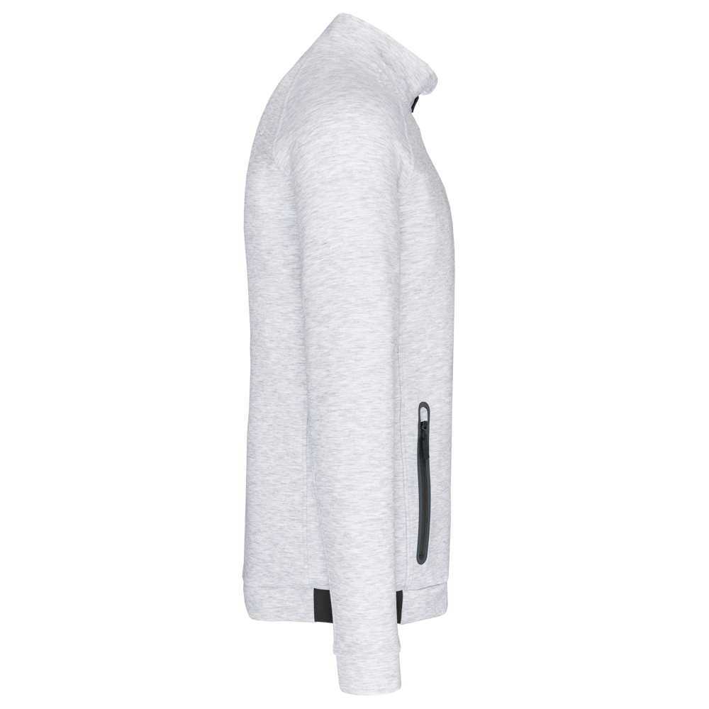 94% polyester / 6% elasthan (79% polyester / 15% viscose / 6% elasthan voor Heather kleur). Hele comfortabele stof. Ritssluiting. 2 ritszakken met warmtegelaste afwerking aan de voorkant. Nauwsluitende boorden aan de mouwen en onderaan, met een elastisch stuk Black op alle kleuren en Dark Grey op de Ash Heather (sluitingen ook). Ideaal om te dragen op trainingsbroek PA1008 in een total Urban Apparel stijl.
