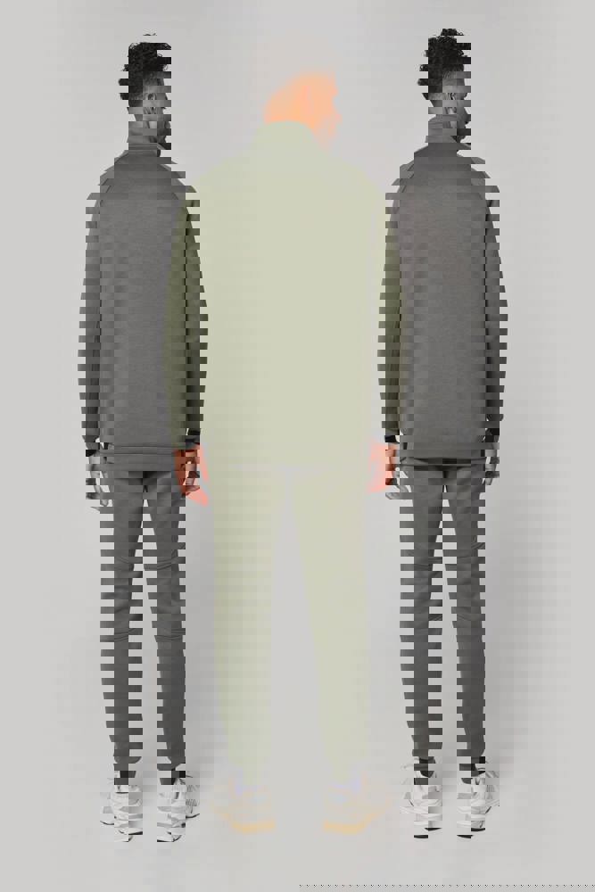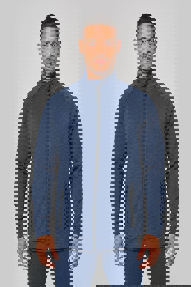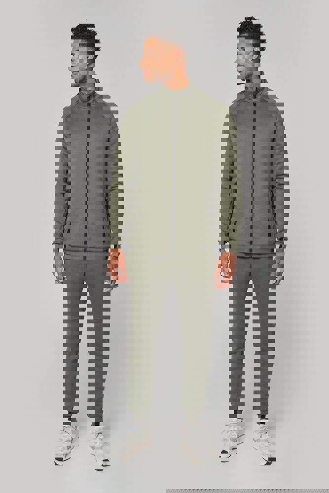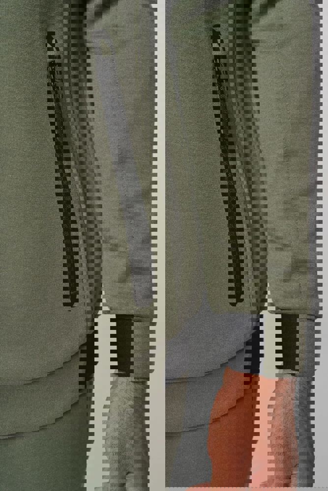 94% polyester / 6% elasthan (79% polyester / 15% viscose / 6% elasthan voor Heather kleur). Hele comfortabele stof. Ritssluiting. 2 ritszakken met warmtegelaste afwerking aan de voorkant. Nauwsluitende boorden aan de mouwen en onderaan, met een elastisch stuk Black op alle kleuren en Dark Grey op de Ash Heather (sluitingen ook). Ideaal om te dragen op trainingsbroek PA1008 in een total Urban Apparel stijl.