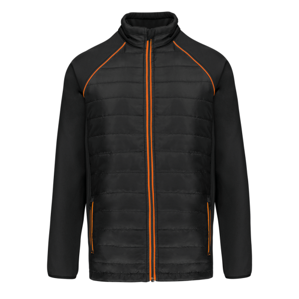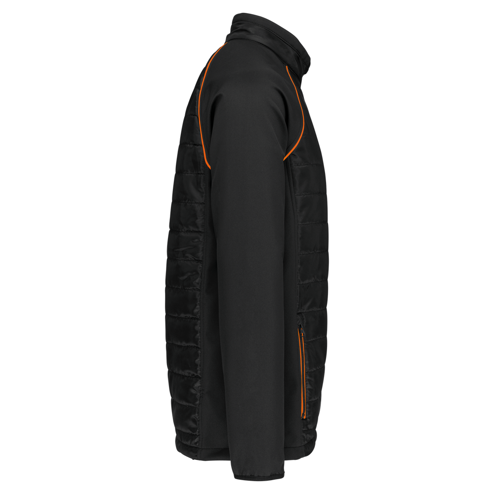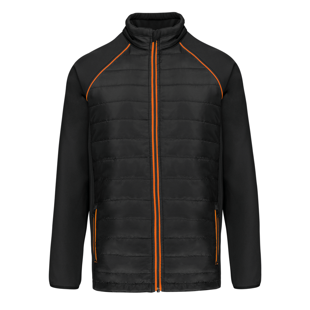 100% polyester. Softshell 2 lagen, in de 4 richtingen rekbare stof voor meer bewegingsruimte en met binnenlaag in fleece voor meer warmte op de mouwen en de schouders. Voorkant en achterkant : 100% polyester 75 g taf 230T met coating. Waterafstotende stof. 2 ritszakken aan de voorkant. 1 naametiket links aan de binnenkant. Contrasterende bies aan de mouwopeningen en in de kraag. Ritssluiting op de voorkant en contrasterende zakken. Blinde drukkersrits onderaan. Ideaal voor dagelijks gebruik.