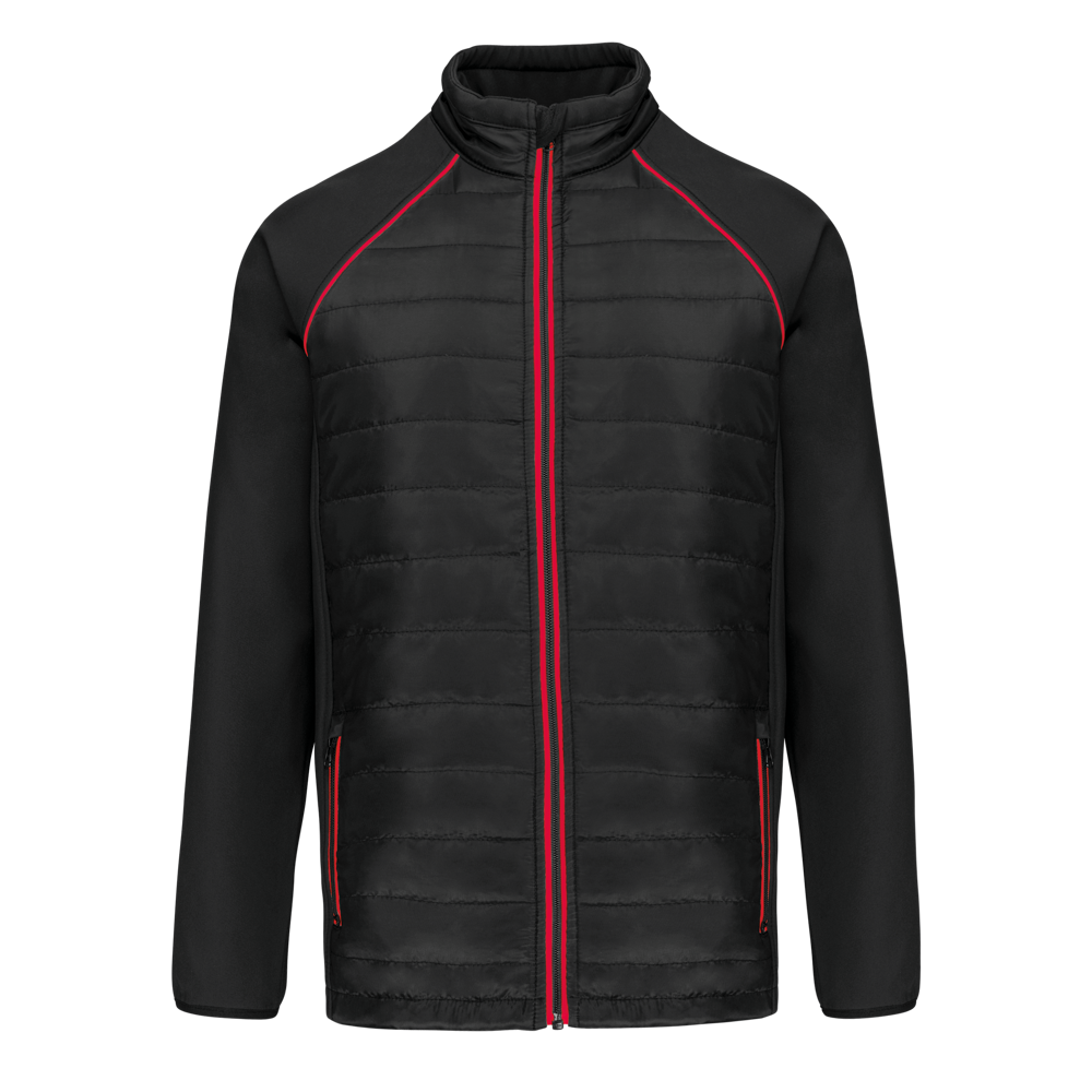 100% polyester. Softshell 2 lagen, in de 4 richtingen rekbare stof voor meer bewegingsruimte en met binnenlaag in fleece voor meer warmte op de mouwen en de schouders. Voorkant en achterkant : 100% polyester 75 g taf 230T met coating. Waterafstotende stof. 2 ritszakken aan de voorkant. 1 naametiket links aan de binnenkant. Contrasterende bies aan de mouwopeningen en in de kraag. Ritssluiting op de voorkant en contrasterende zakken. Blinde drukkersrits onderaan. Ideaal voor dagelijks gebruik.