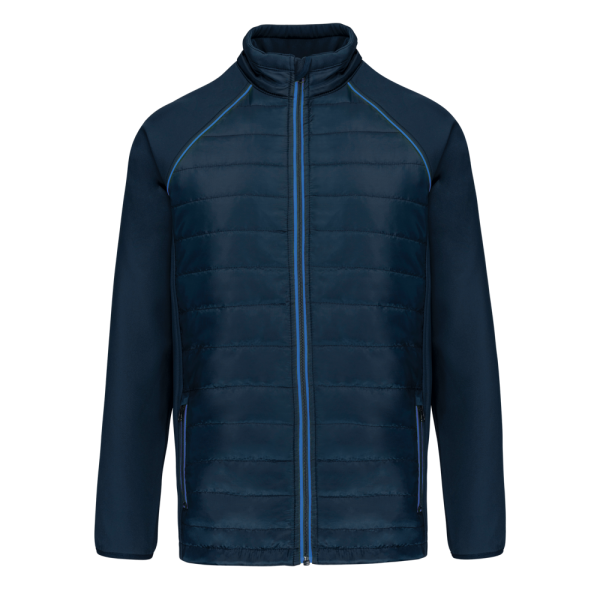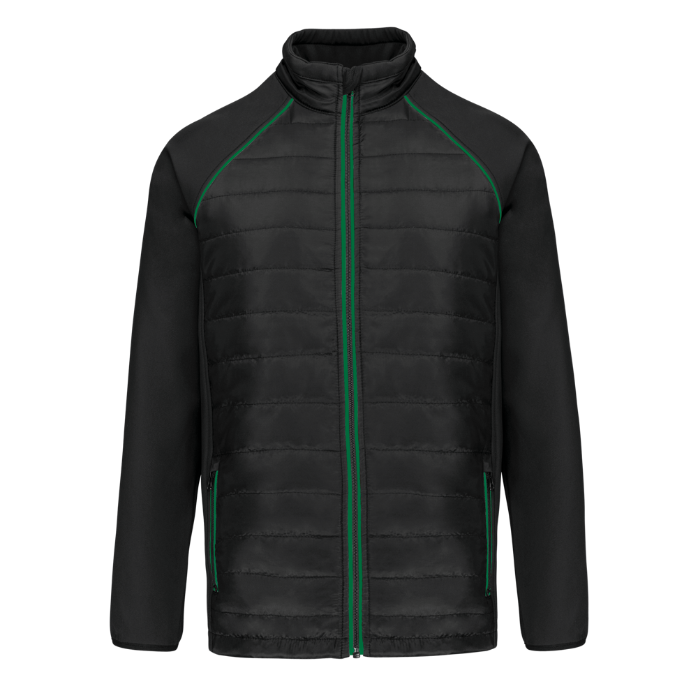 100% polyester. Softshell 2 lagen, in de 4 richtingen rekbare stof voor meer bewegingsruimte en met binnenlaag in fleece voor meer warmte op de mouwen en de schouders. Voorkant en achterkant : 100% polyester 75 g taf 230T met coating. Waterafstotende stof. 2 ritszakken aan de voorkant. 1 naametiket links aan de binnenkant. Contrasterende bies aan de mouwopeningen en in de kraag. Ritssluiting op de voorkant en contrasterende zakken. Blinde drukkersrits onderaan. Ideaal voor dagelijks gebruik.