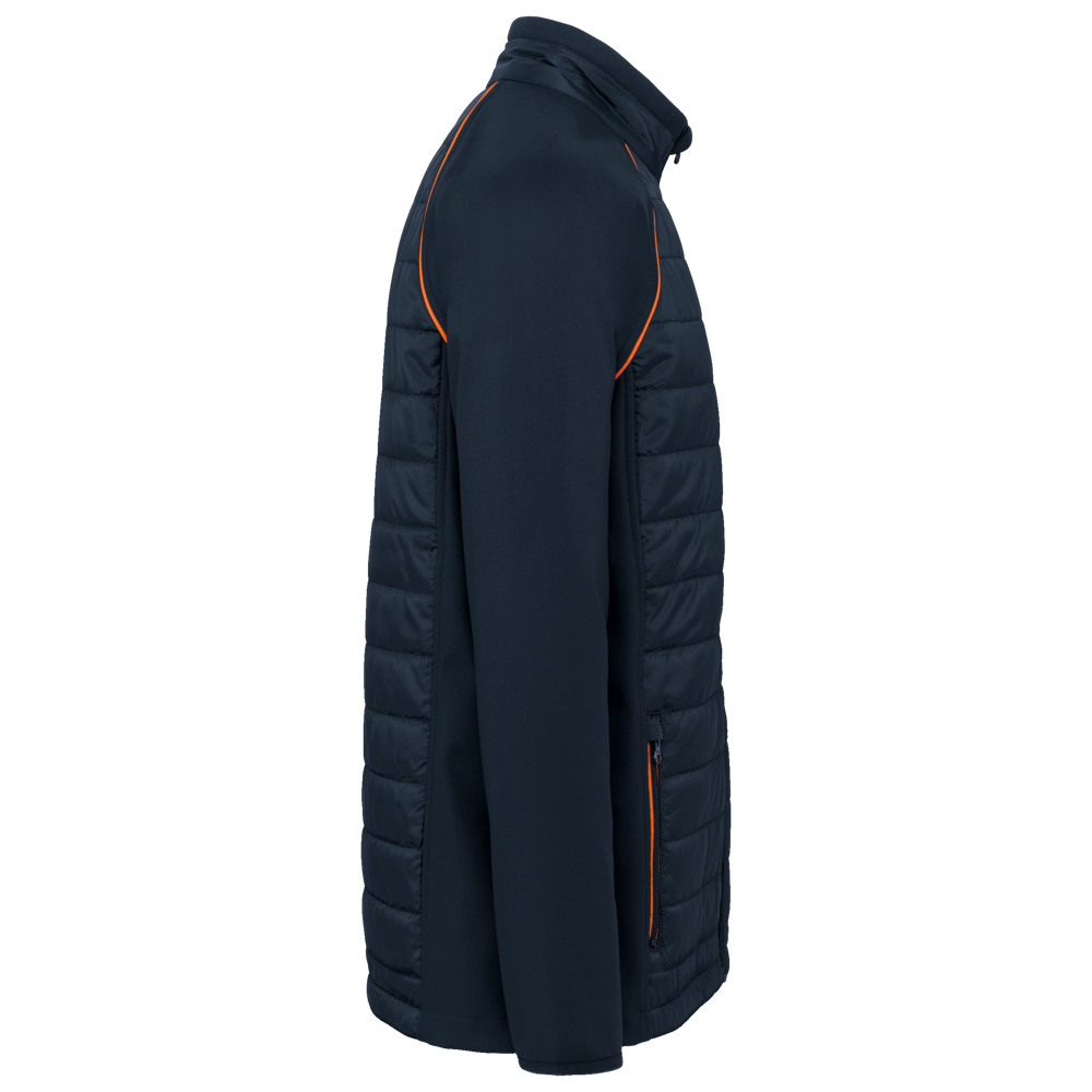 100% polyester. Softshell 2 lagen, in de 4 richtingen rekbare stof voor meer bewegingsruimte en met binnenlaag in fleece voor meer warmte op de mouwen en de schouders. Voorkant en achterkant : 100% polyester 75 g taf 230T met coating. Waterafstotende stof. 2 ritszakken aan de voorkant. 1 naametiket links aan de binnenkant. Contrasterende bies aan de mouwopeningen en in de kraag. Ritssluiting op de voorkant en contrasterende zakken. Blinde drukkersrits onderaan. Ideaal voor dagelijks gebruik.