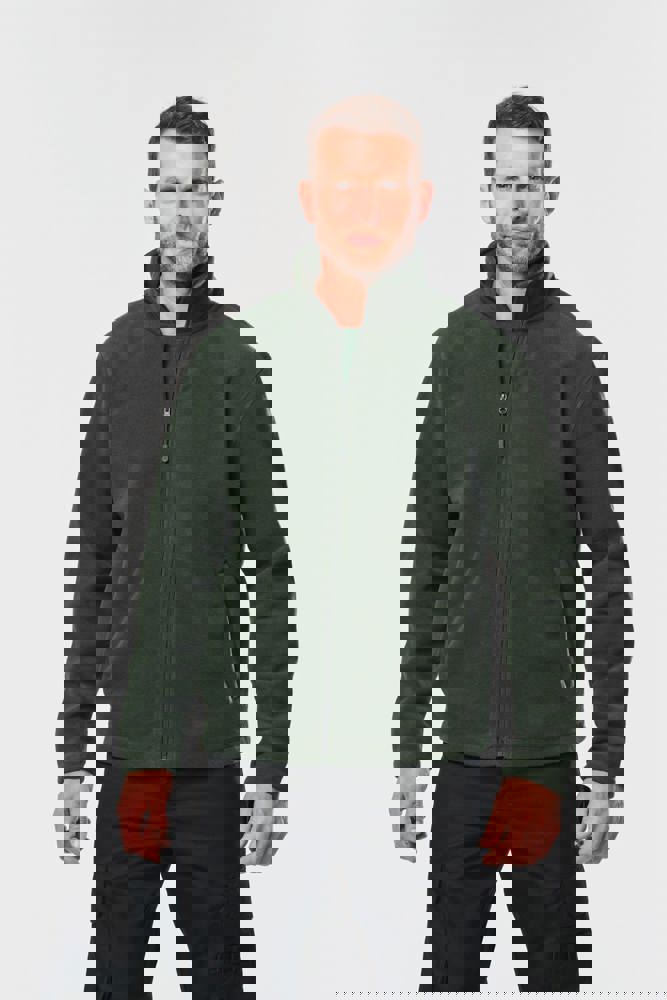 100% polyester. Polyester anti-pilling microfleece. 2 voorzakken met rits.