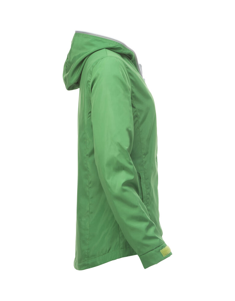 Opvallende, lichtgewicht jas met rits die tot en met de capuchon dicht kan. De jas is uitgerust met opvallende contrasterende strepen die langs de rits lopen voor een unieke, opvallende uitstraling. De jas is gemaakt van hoogwaardig ripstop polyester met PU coating ter bescherming bij regenachtig weer. De jas is gemakkelijk te veredelen dankzij de drukkersrits aan de binnenzijde.