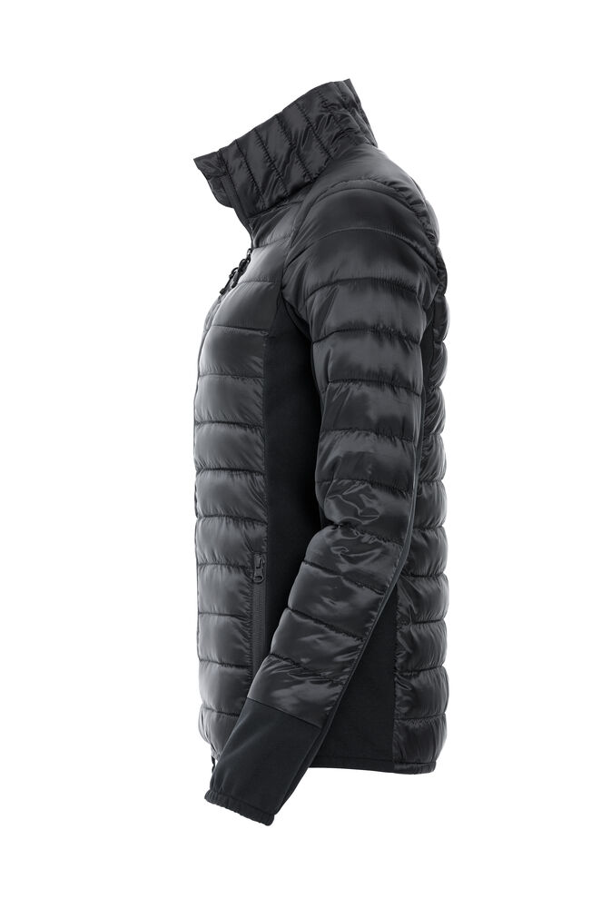 Opvallende gewatteerde jas met eigentijds design en een moderne pasvorm. De jas is zorgvuldig afgewerkt met elastiek in de boord en onderaan de mouwen, zijpanelen van softshell, necktape en ritsen. De jas is voorzien van twee steekzakken met rits, een borstzak met rits en binnenzakken. Deze moderne jas zorgt voor een professionele en eigentijdse uitstraling. Ideaal voor degene die op subtiele wijze op wil vallen.