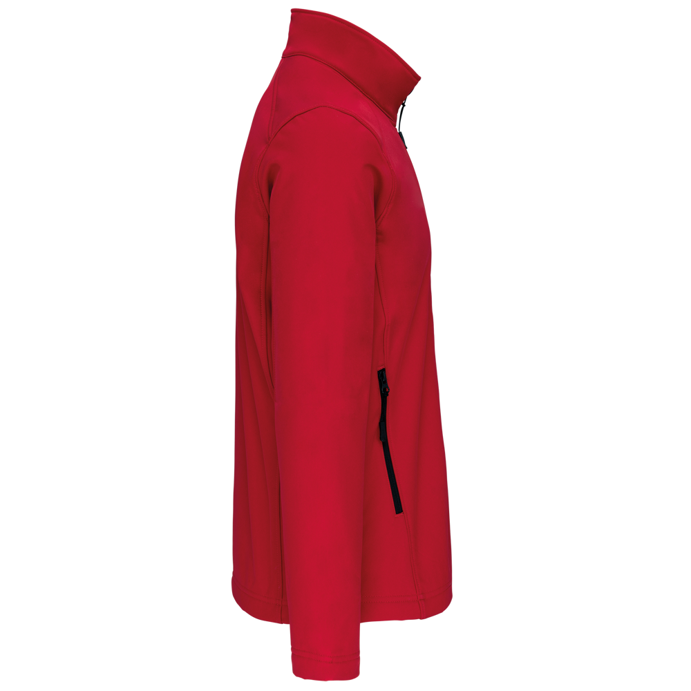Stof in 3 lagen aan elkaar geklit, ademend 3000 g/m2/24H en 8000 mm waterdicht. Buitenkant: 95% polyester / 5% elasthan. Tussenlaag: ademend membraan. Binnenkant: microfleece. Ritssluiting. Zakken met rits aan de voorkant. 1 zak met rits op de linkermouw.