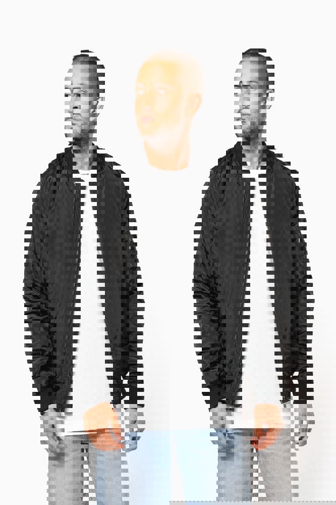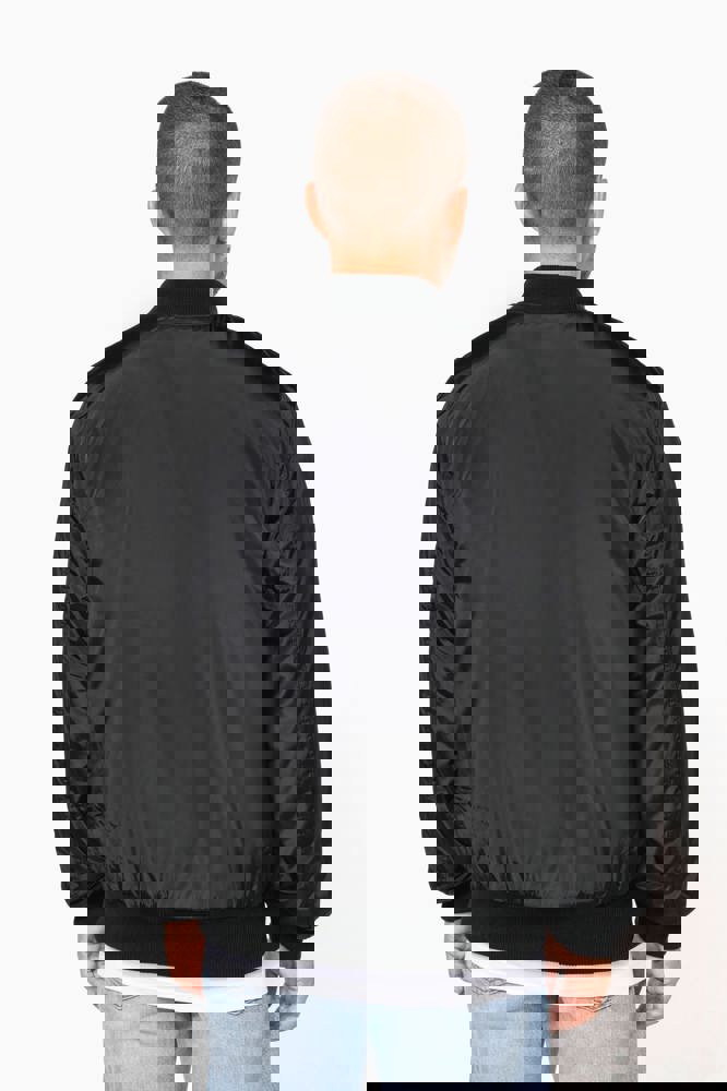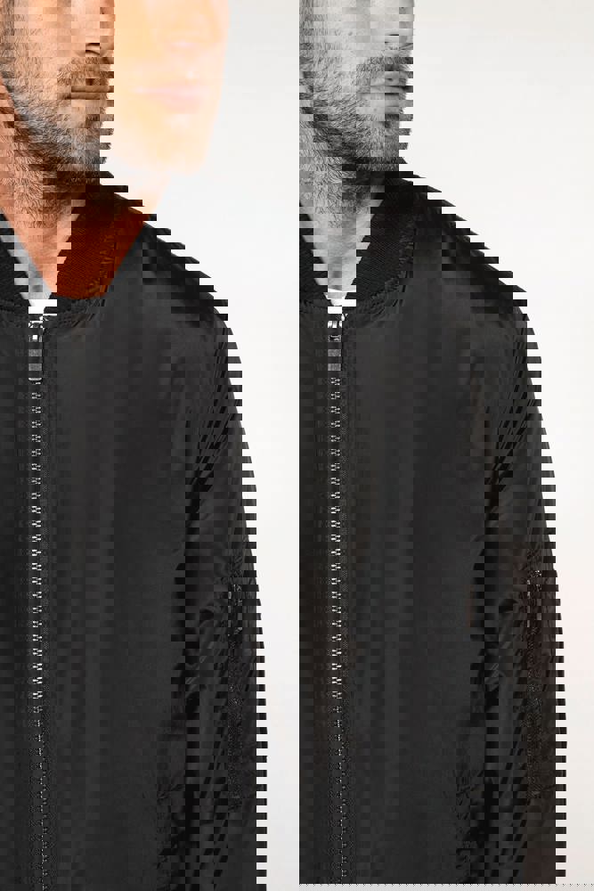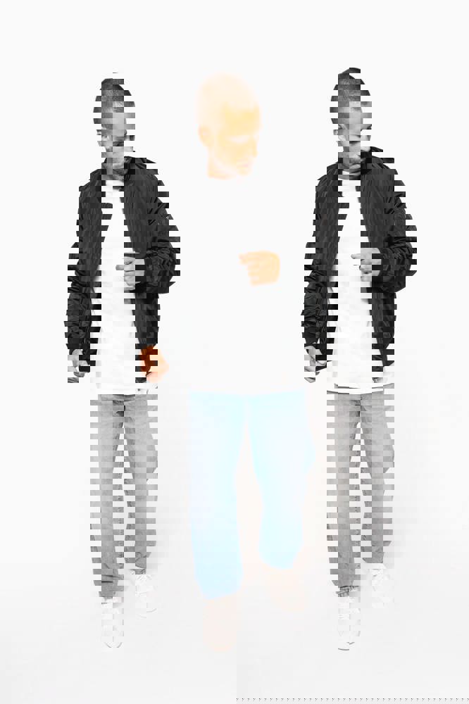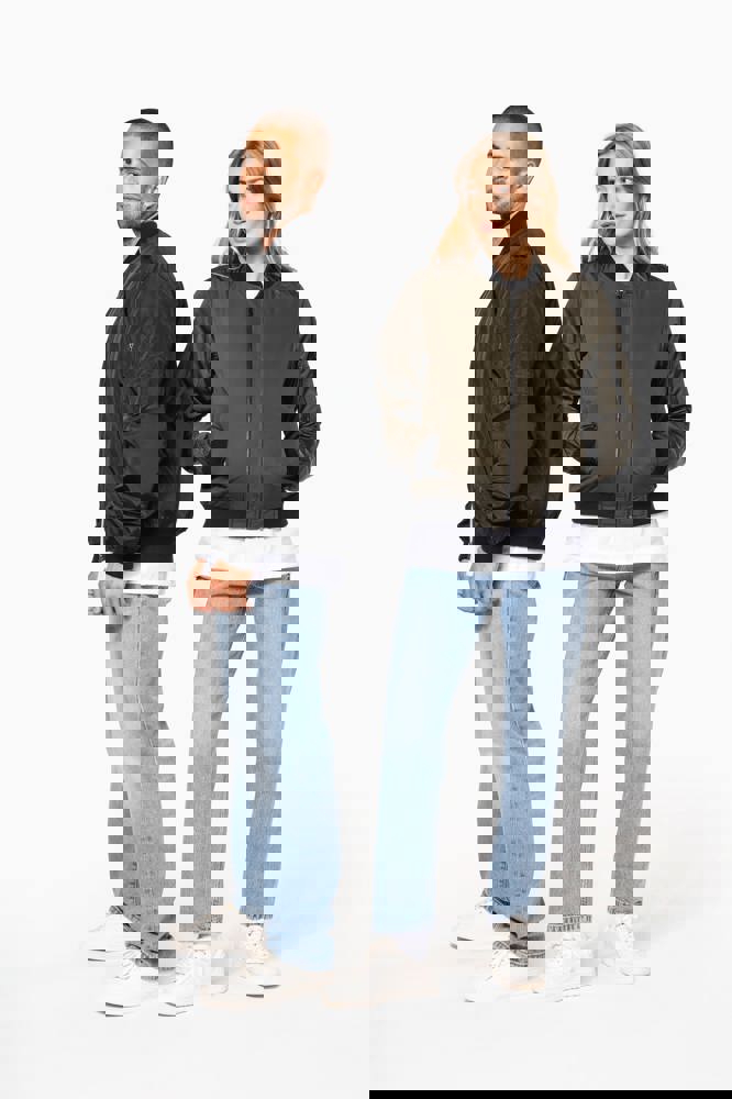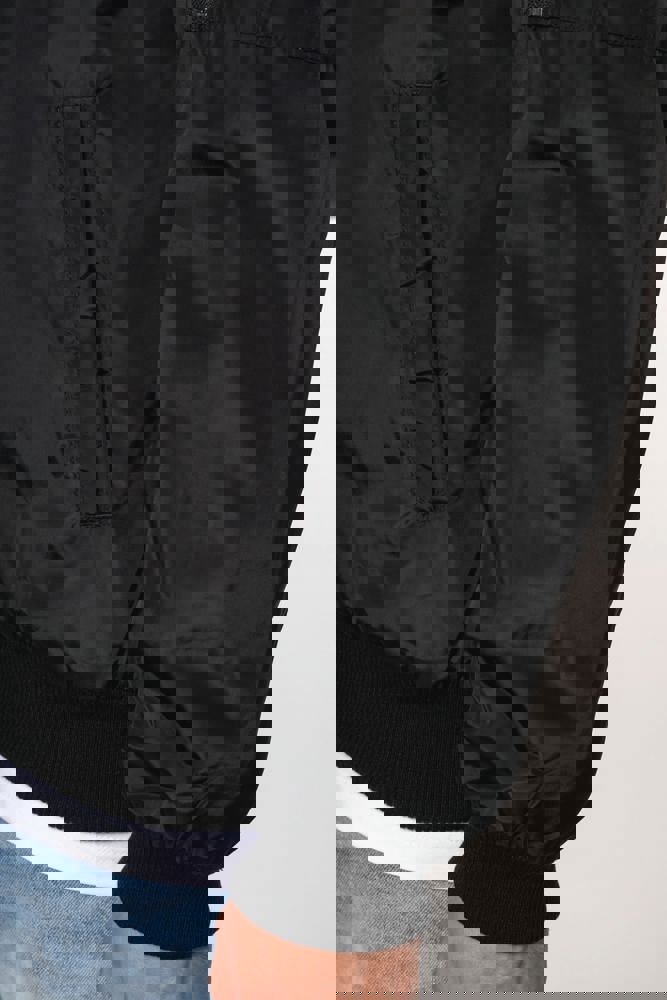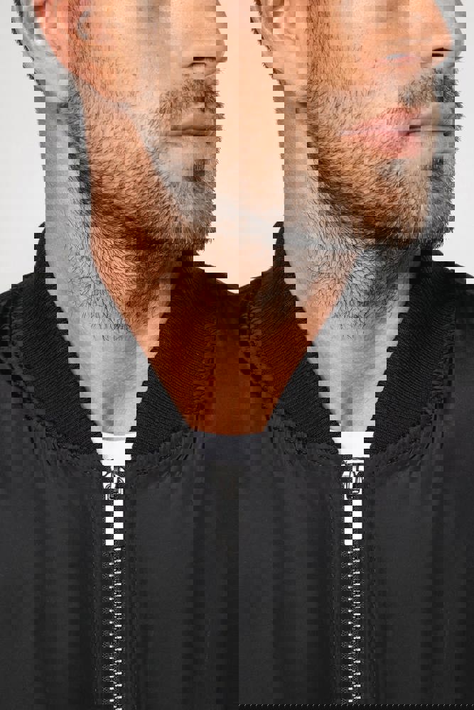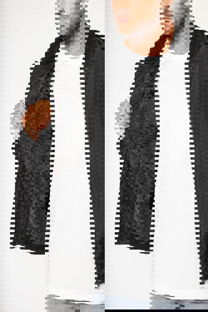 100% polyester. Gewatteerde voering van 100% polyester. Ritssluiting. 2 omzoomde zakken aan de voorkant. Opzetzak met rits en penzak op de linkermouw. Omzoomde binnenzak. 2x2 ribboord aan halsopening, mouwuiteinden en onderkant. 1 rits aan de linkerkant en 1 drukkersrits.