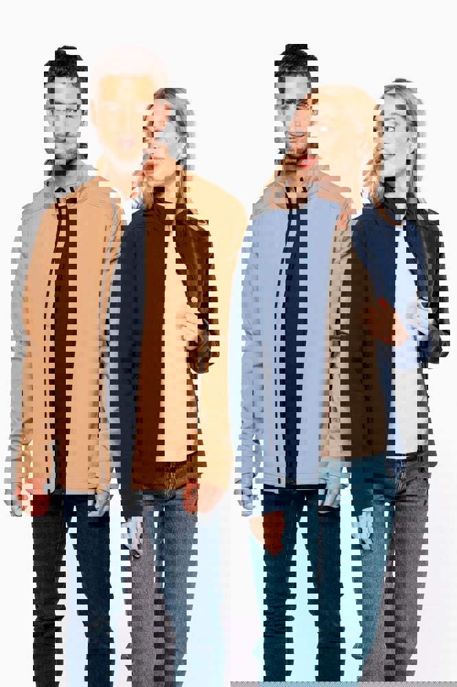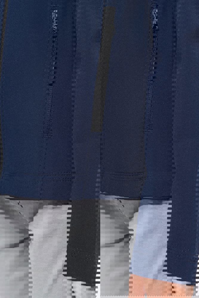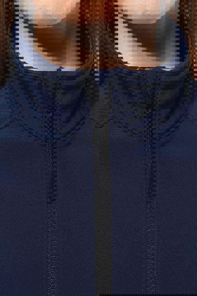 95% polyester / 5% elasthan. Stof in 3 lagen aan elkaar geklit, ademend 3000 g/m2/24H en 8000 mm waterdicht. Buitenkant: 95% polyester / 5% elasthan. Tussenlaag: ademend membraan. Binnenkant: microfleece. Getailleerde snit. Ritssluiting. Zakken met rits aan de voorkant. 1 zak met rits op de linkermouw.