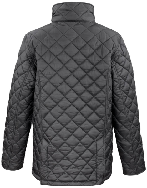 Buitenkant: 100% nylon met polyacryl coating, wattering in een ruitvormig motief 2x2cm. Binnenkant gevoerd met 100% polyester en 100% polyester fleece. Kraag in velour rib. Zware tweerichting ritssluiting. Waterafstoten en winddicht. Stormoverslag met drukknopen. 2 voorzakken met drukknopen en 1 zak met ritssluiting. 2 openingen met drukknopen op de achterkant.