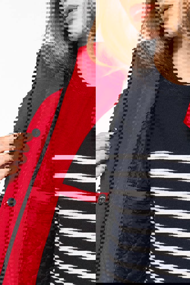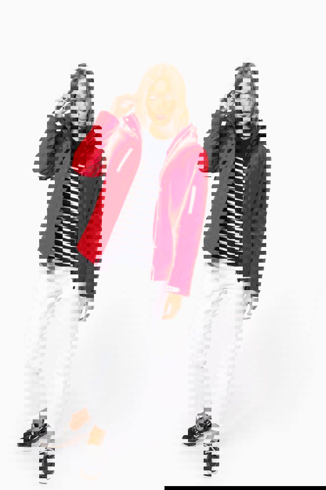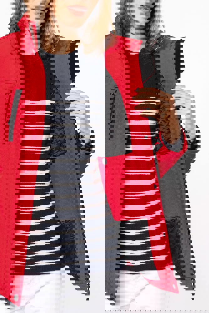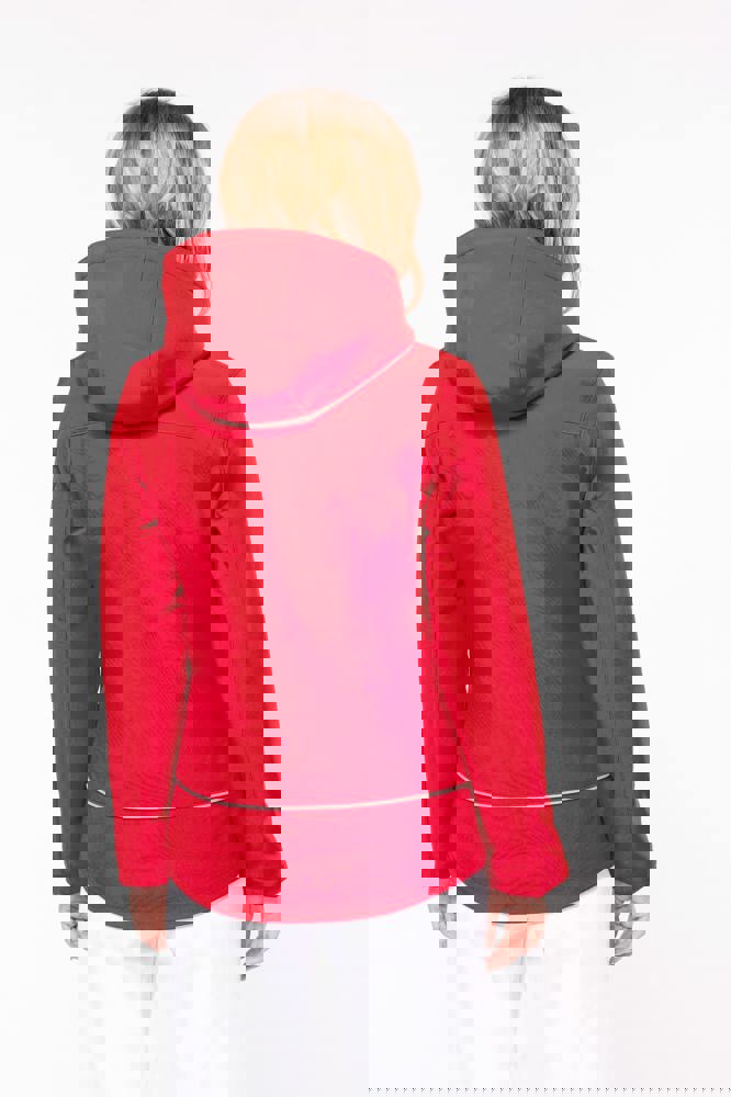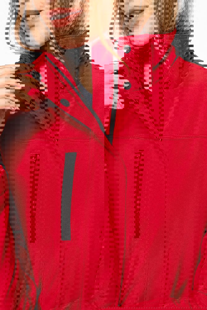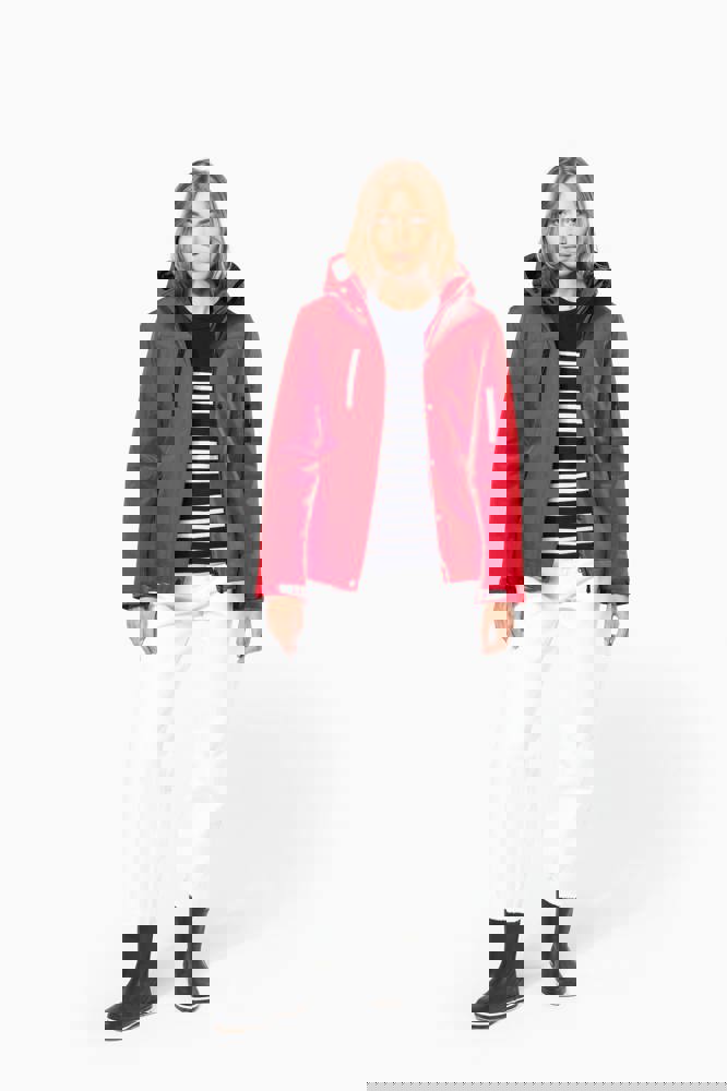 95% polyester / 5% elasthan. 3-laagse ademende stof 3000 g/m²/24 u en waterdicht 8000 mm. Buitenkant: 95% polyester / 5% elasthan. Tussenlaag: ademend membraan. Binnenlaag: microfleece. Gewatteerde voering van 100% polyester. Voorkant: 4 ritszakken (2 aan de zijkant, 1 op de mouw, 1 rechts op de borst). 2 binnenzakken met drukknoop. Afneembare capuchon met 3 gevoerde en gewatteerde panelen, regelbaar met stoppers. Met klittenband regelbare mouwuiteinden. 1 rits aan de linkerkant en 1 drukkersrits.