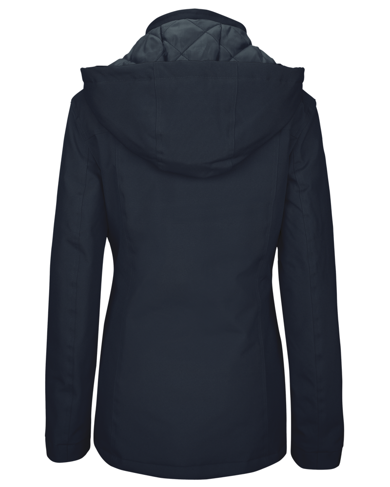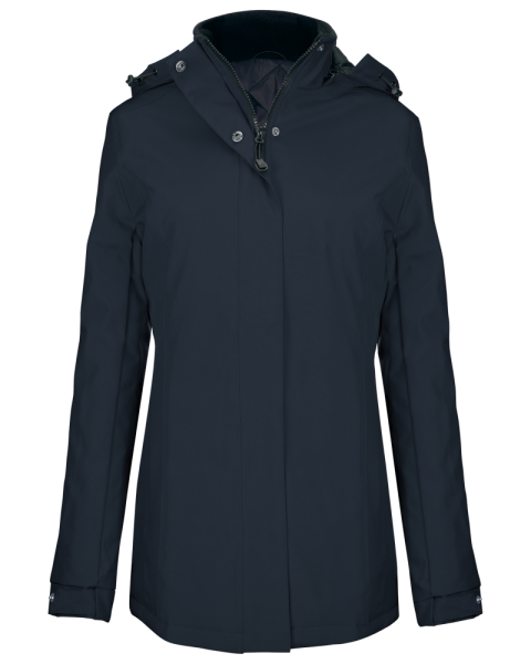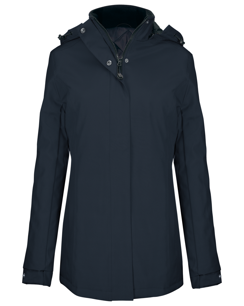 Buitenkant: 100% oxford polyester. Binnenkant: gewatteerde polyester. Ritssluiting met overslag en onzichtbare drukknopen. 2 ritszakken aan de buitenkant. 1 binnenzak. Afneembare capuchon. Kraag met fleecevoering. Drukkersrits.