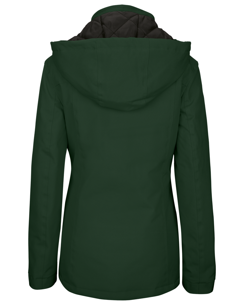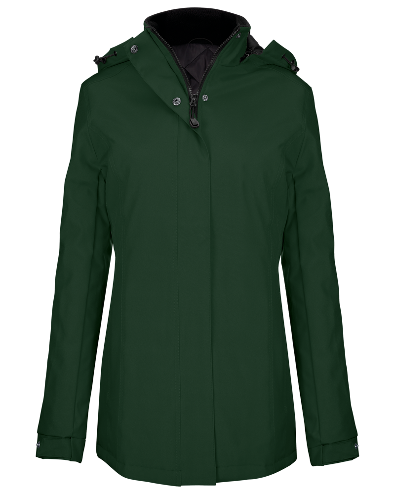 Buitenkant: 100% oxford polyester. Binnenkant: gewatteerde polyester. Ritssluiting met overslag en onzichtbare drukknopen. 2 ritszakken aan de buitenkant. 1 binnenzak. Afneembare capuchon. Kraag met fleecevoering. Drukkersrits.