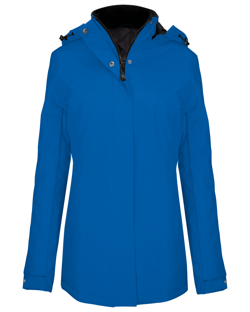 Buitenkant: 100% oxford polyester. Binnenkant: gewatteerde polyester. Ritssluiting met overslag en onzichtbare drukknopen. 2 ritszakken aan de buitenkant. 1 binnenzak. Afneembare capuchon. Kraag met fleecevoering. Drukkersrits.