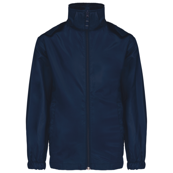 100% polyester. Toon op toon ritssluiting. Capuchon in de kraag met klittenbandsluiting. 2 voorzakken met ritssluiting. Elastische mouwuiteinden. Opvouwbaar volgens het K-Way® systeem.