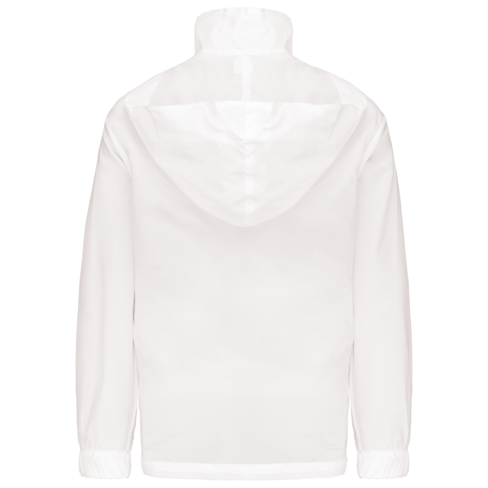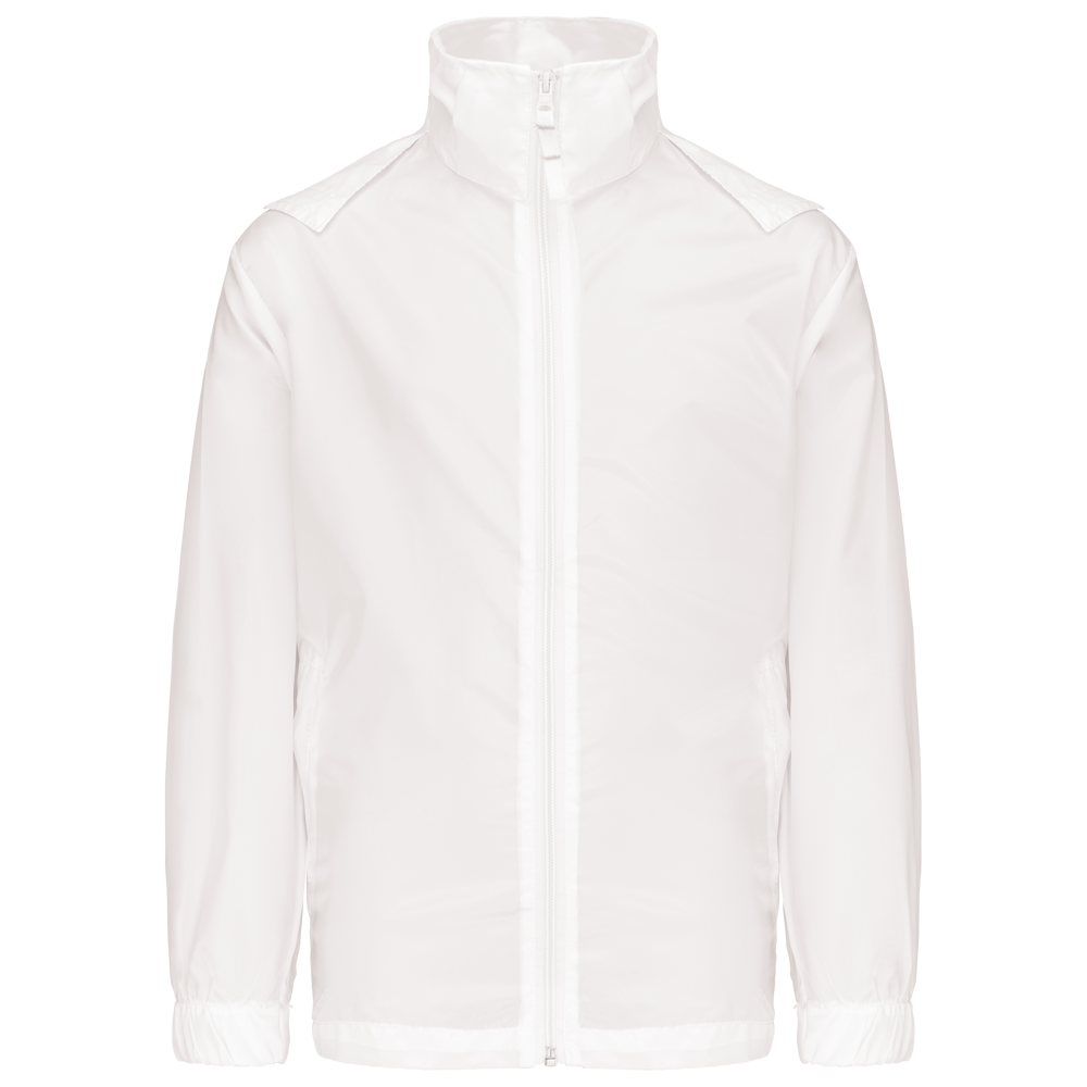 100% polyester. Toon op toon ritssluiting. Capuchon in de kraag met klittenbandsluiting. 2 voorzakken met ritssluiting. Elastische mouwuiteinden. Opvouwbaar volgens het K-Way® systeem.