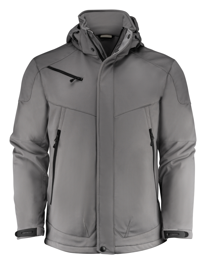 Gevoerde softshell met afneembare capuchon, voorgevormde mouwen en trekkoord onderaan de zoom. De mouwen zijn verstelbaar met velcro. Voorzakken en borstzak met ritssluiting, twee binnenzakken met ritssluiting en één zak in membraanvoering. Standaard wordt deze jas geleverd met zwarte zippullers. De zippullers kunnen indien gewenst vervangen worden door één van de andere beschikbare kleuren.