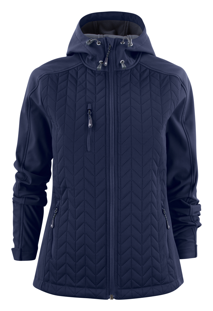 Wind- en waterafstotende hybride jas in twee materialen met groot ademend vermogen. Softshell aan de mouwen, juk en capuchon en gequilte interlock op de torso met aan de binnenzijde microfleece. Waterafstotende C6 afwerking. De capuchon en de zoom onderaan zijn aanpasbaar met de elastische trekkoorden. Binnenzak met ritssluiting en voorzakken met meshvoering die bijdragen aan extra ventilatie.