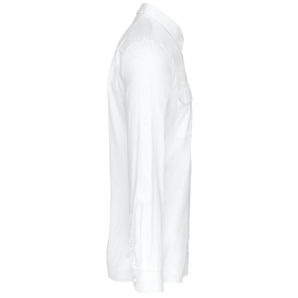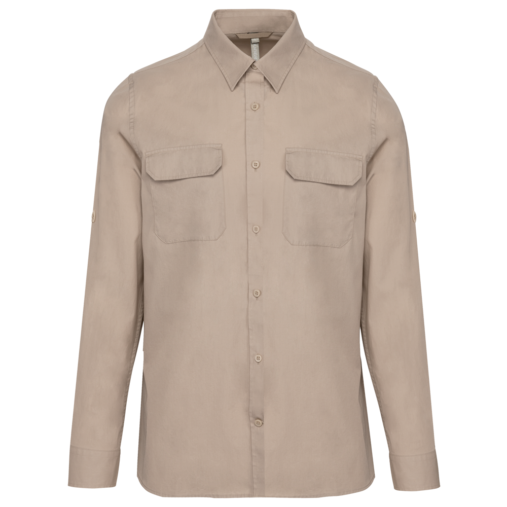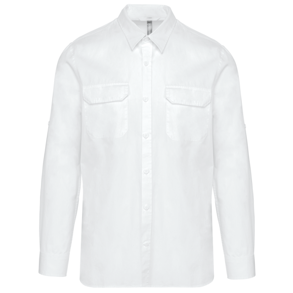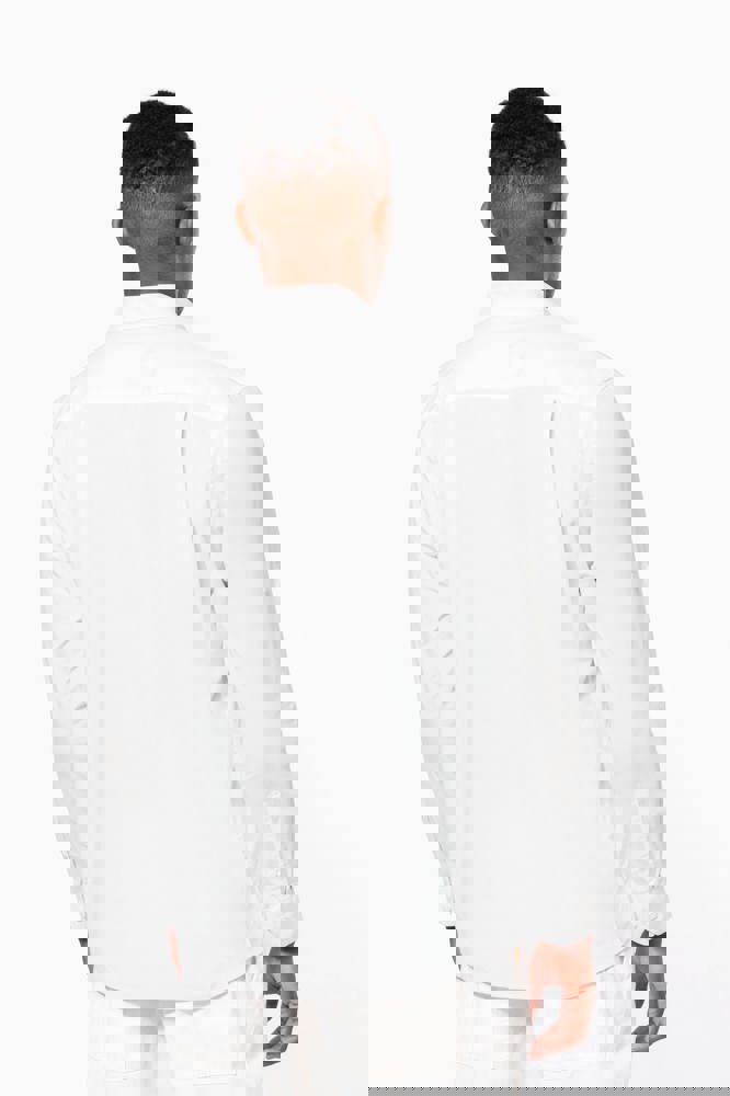100% katoen. Popeline. Kraag zonder knopen. 2 opgezette zakken met klep aan de voorkant. Verstelbare mouwuiteinden met knoop. Opstroopbare mouwen met een knooplijst. Shirt gewassen. Dit product kreeg een speciale behandeling om het er verouderd te laten uitzien. Dit ambachtelijke procedé maakt dat er kleurverschillen zijn tussen de producten, waardoor elk stuk uniek is.
