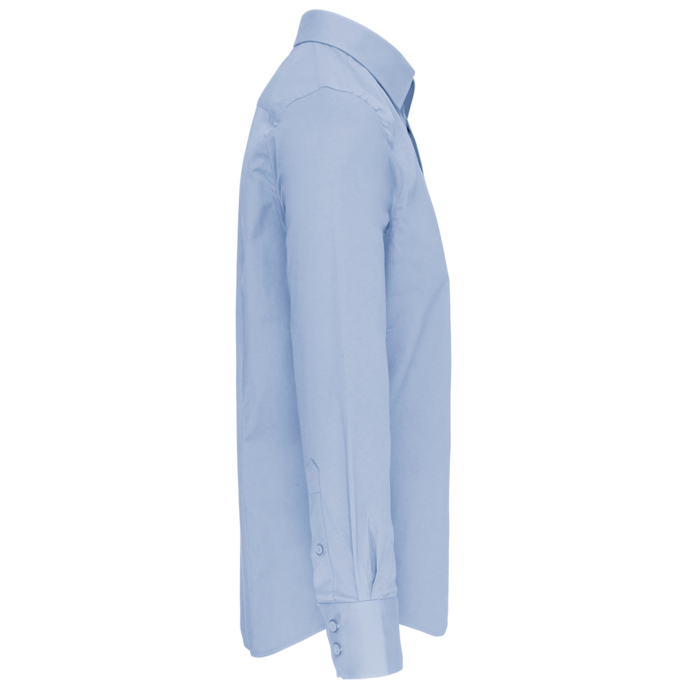 97% katoen / 3% elasthan. Getailleerd overhemd en comfortabele pasvorm. Verstevigde kraag met baleinen. Toon op toon knopen. Dubbel inzetstuk op de rug. Plooitjes aan de achterkant. Afgewerkt met dubbele vouwnaden. Omgeslagen mouwuiteinden met 2 knopen. 2 extra knopen. Afgerond boord aan de onderkant.