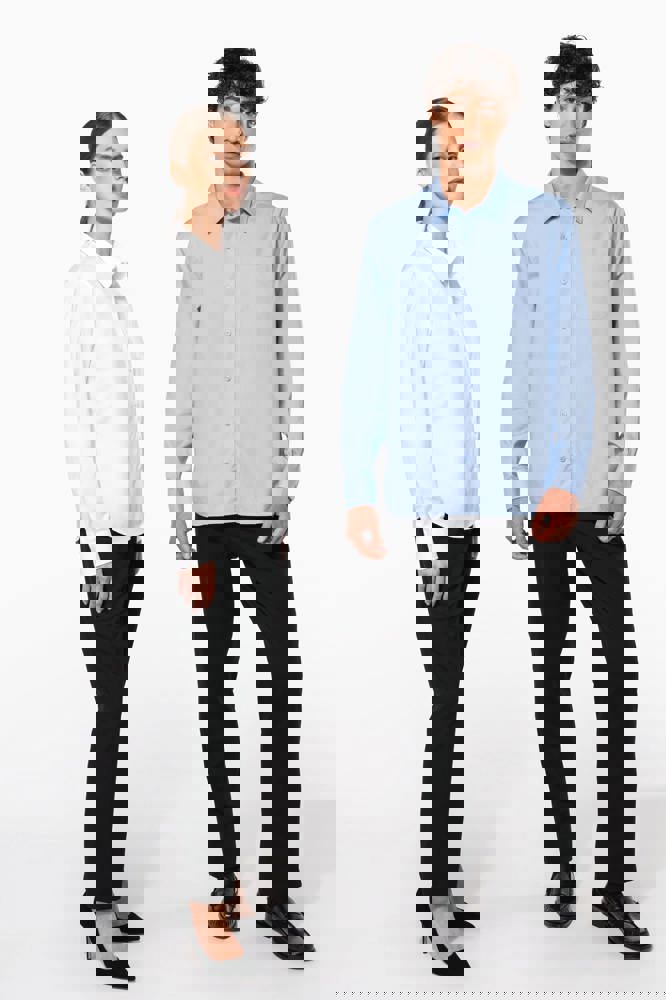 100% popeline katoen. Gemakkelijk in onderhoud ( Easy Care). Kraag zonder knopen. Toon op toon knopen. Borstzakje. Verstelbare mouwen. 1 extra knoop. Afgerond boord aan de onderkant.