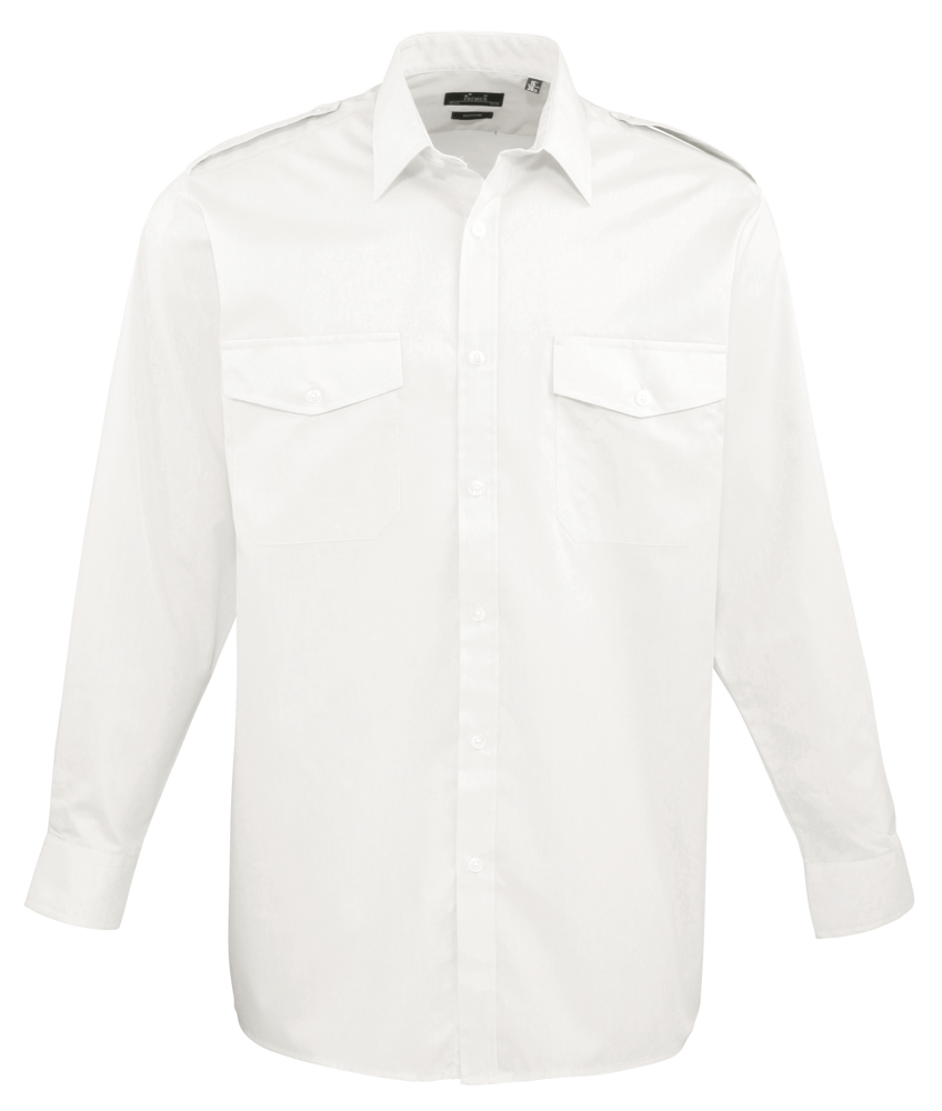 65% polyester / 35% katoen. Versterkte kraag. 2 borstzakken met knopen en penhouder op de linkerzijde. Epauletten niet meegeleverd. Kraag in cm tussen haakjes.