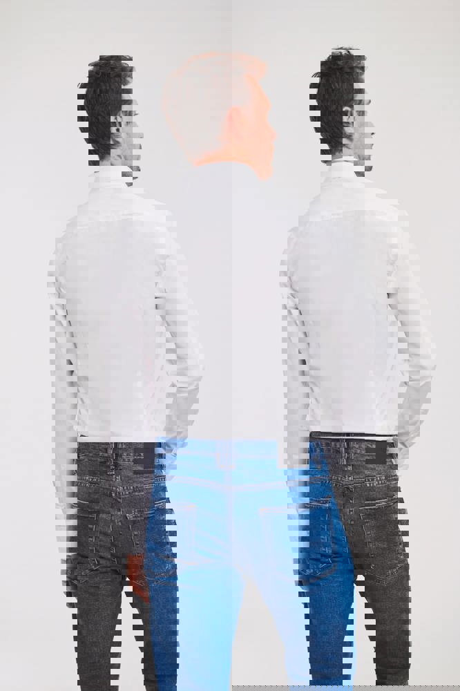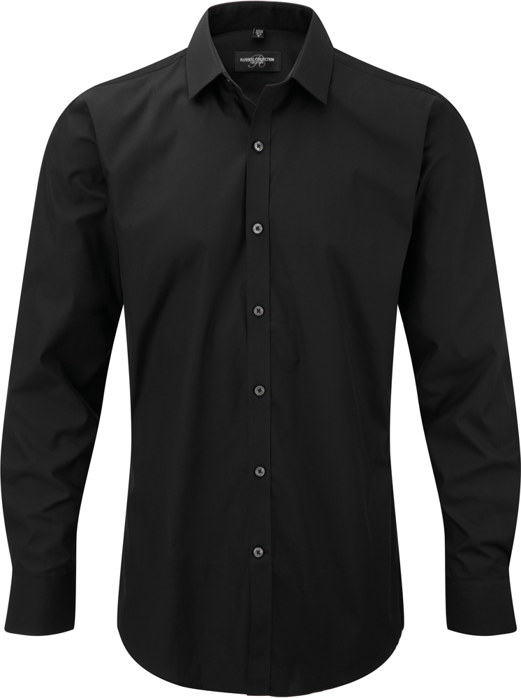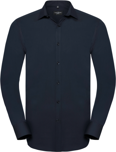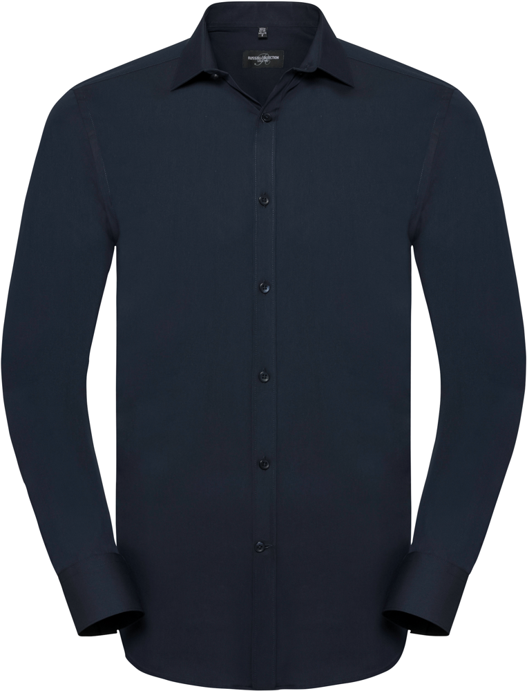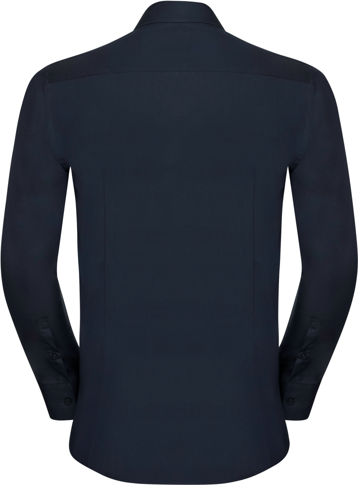75% katoen / 25% elastomultiester ( Lycra® T400). Deze nieuwe vezel zorgt voor comfort, elasticiteit, duurzame vorm en afvoer van transpiratie. Half bedekte kraag en korte overslag. Rechte knooplijst. Rugplooitjes. Vierkante manchetten met ruimte voor manchetknopen. Getailleerde snit.