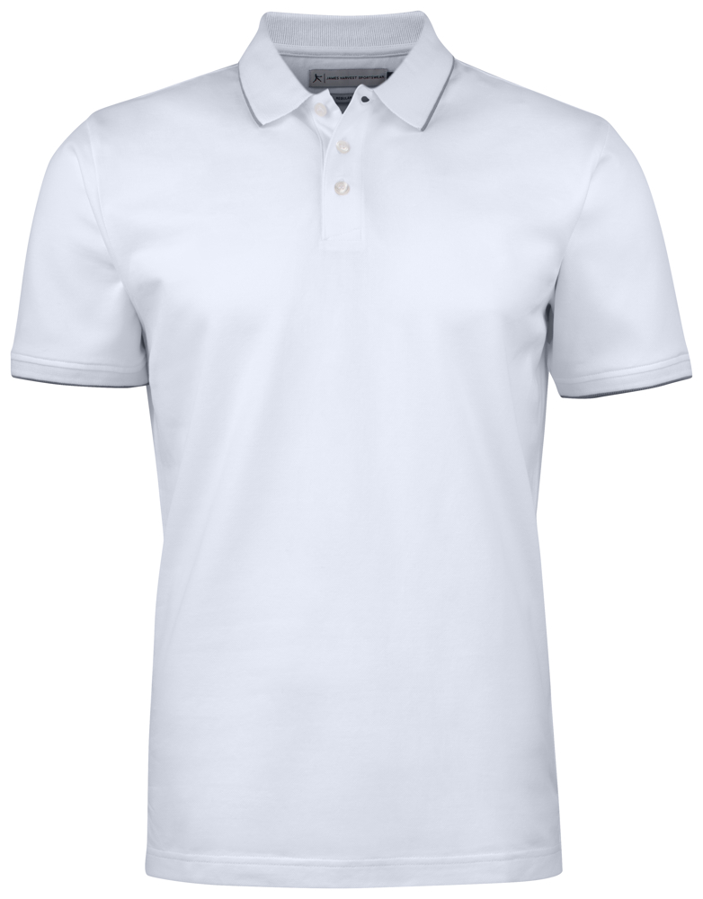 Poloshirt met een klassieke witte streep op de kraag en mouw (Grijze streep op witte poloshirts)....meer