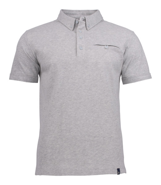 Poloshirt met zijsplittten, zijpanelen in Jaquard en kraag in glad breisel. De herenversie heeft een buttondown, borstzakje met knoopje en een vierknoopsluiting. De damesvariant heeft een volledigknopenpad aan de voorzijde. De stof is nabehandeld met een enzyme wash, waardoor het materiaal voorgekrompen is en zacht aanvoelt.
