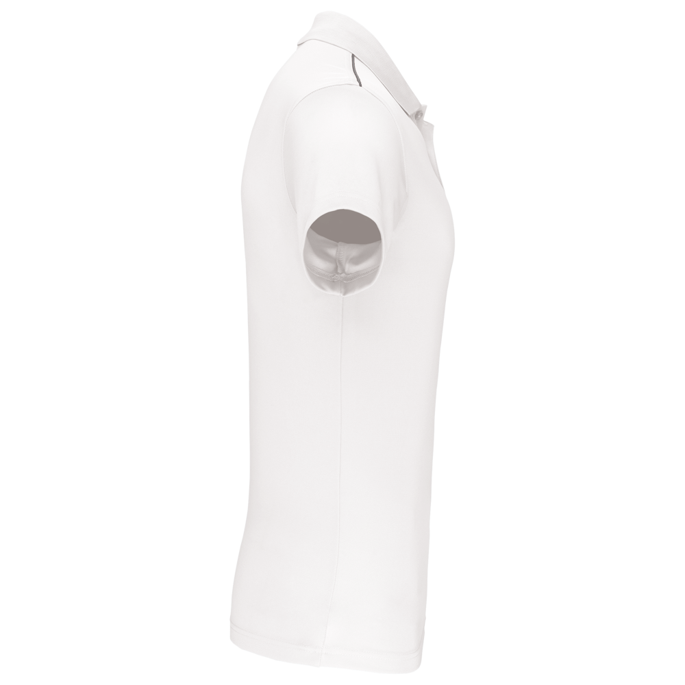 100% polyester interlock. Sneldrogende stof. Kraag in rib. Knooplijst met 3 knopen. Nektape en zijsplitjes in contrastkleur. Contrastkleurige bies op de schouders. Afwerking met dubbele stiksels aan de mouwuiteinden en onderaan.