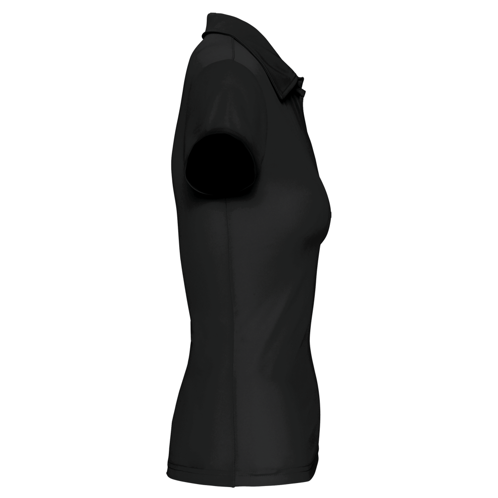 50% polyester CoolPlus® / 50% polyester. Ademende stof. Knooplijst zonder knopen. Afwerking met dubbele stiksels aan de mouwen en onderaan.