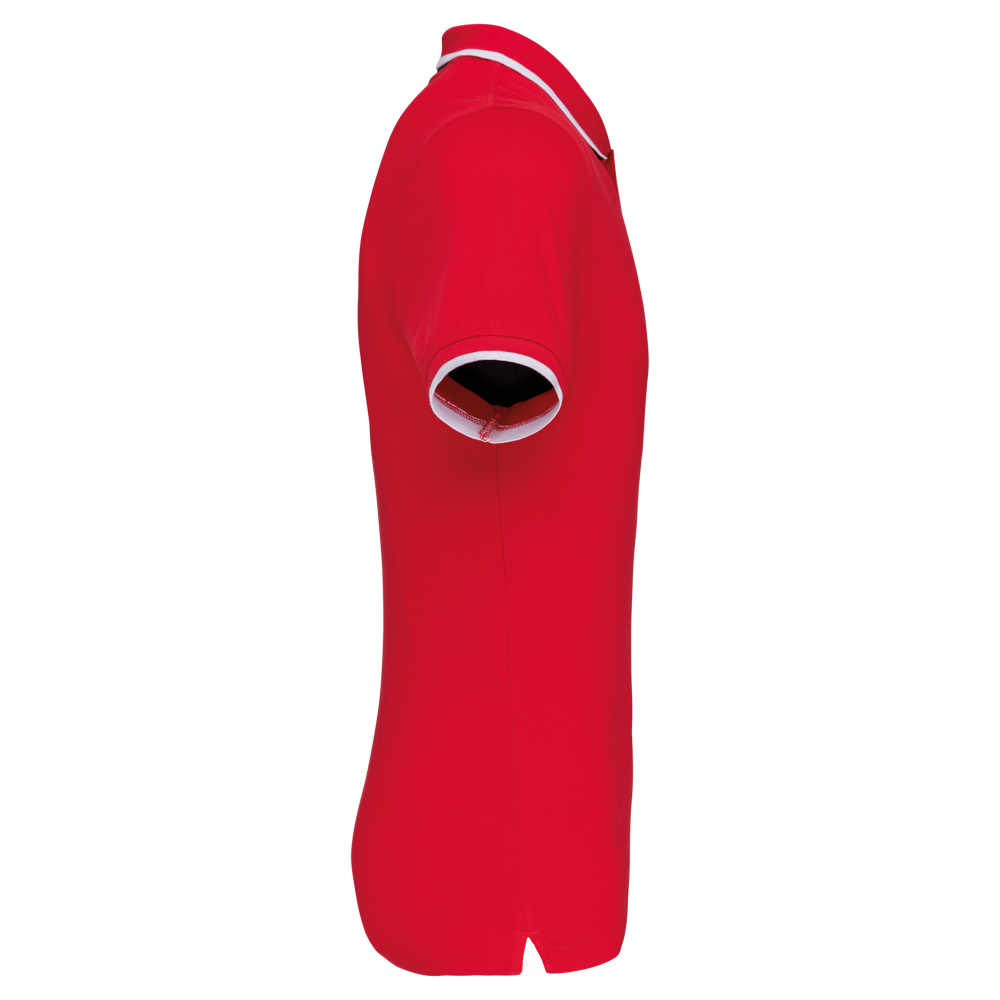 100% katoen piqué. Kraag in rib met bies in contrastkleur aan de boven- en onderkant (behalve White/ Navy : geen contrast onder de kraag, alleen een dunne rode rand onder de sluiting). Nektape en zijsplitjes in contrastkleur. Fantasie knooplijst met 2 knopen. Mouwuiteinden in rib met bies in contrastkleur. Afwerking met dubbele stiksels aan de onderkant. De kraag is verstevigd aan de achterkant en kan omhoog of omlaag gedragen worden.
