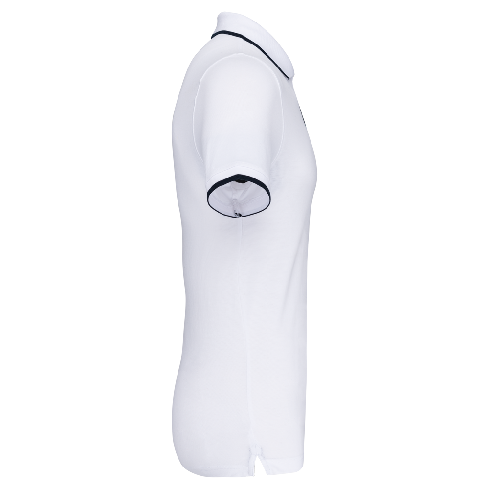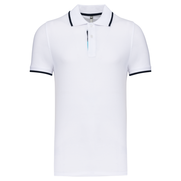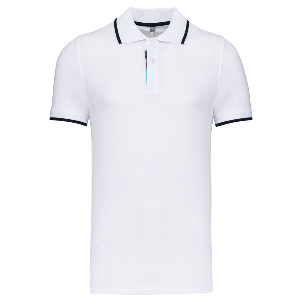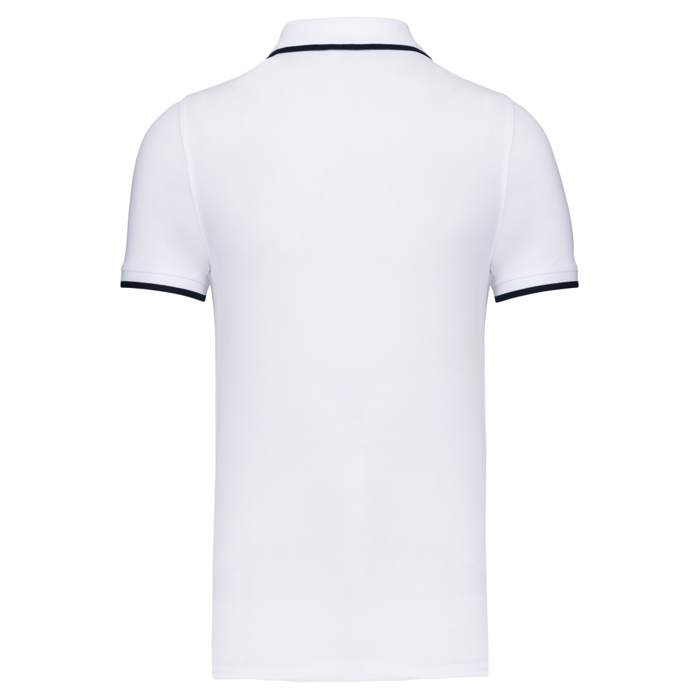100% katoen piqué. Kraag in rib met bies in contrastkleur aan de boven- en onderkant (behalve White/ Navy : geen contrast onder de kraag, alleen een dunne rode rand onder de sluiting). Nektape en zijsplitjes in contrastkleur. Fantasie knooplijst met 2 knopen. Mouwuiteinden in rib met bies in contrastkleur. Afwerking met dubbele stiksels aan de onderkant. De kraag is verstevigd aan de achterkant en kan omhoog of omlaag gedragen worden.
