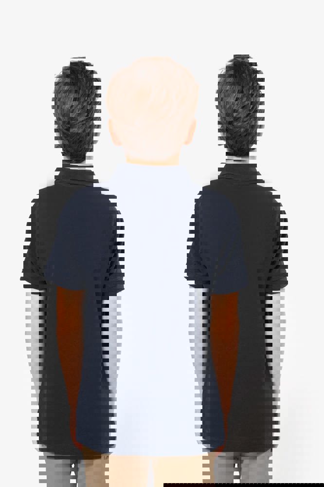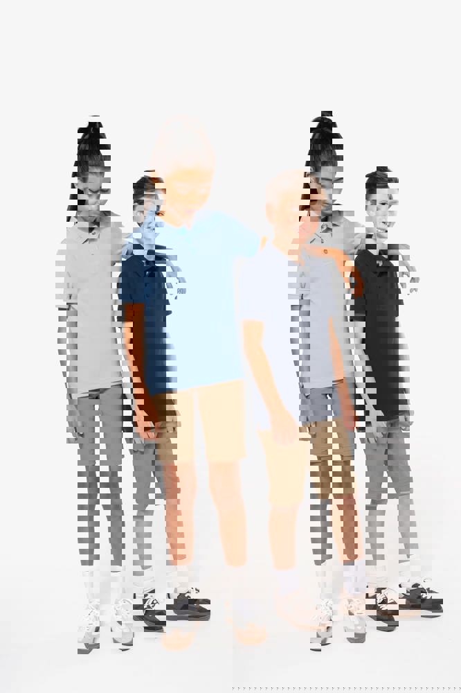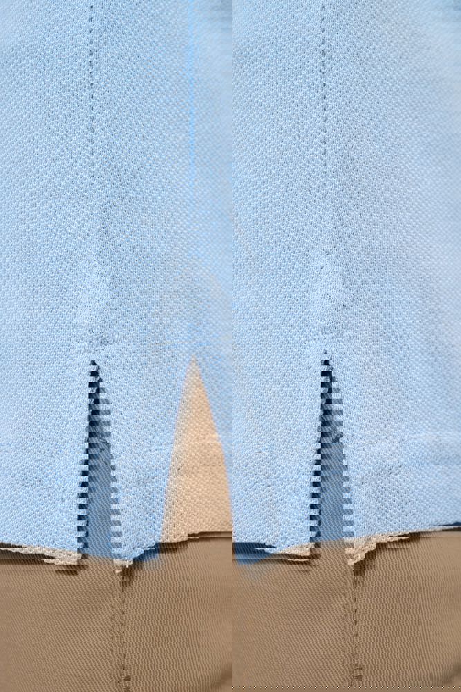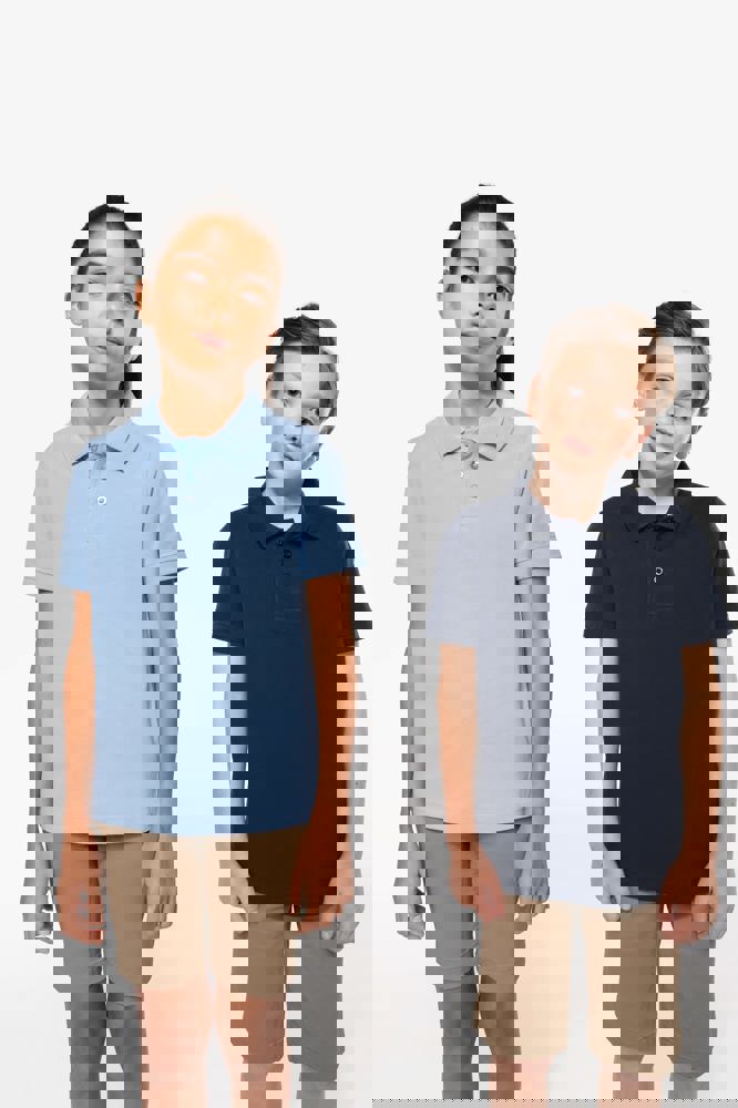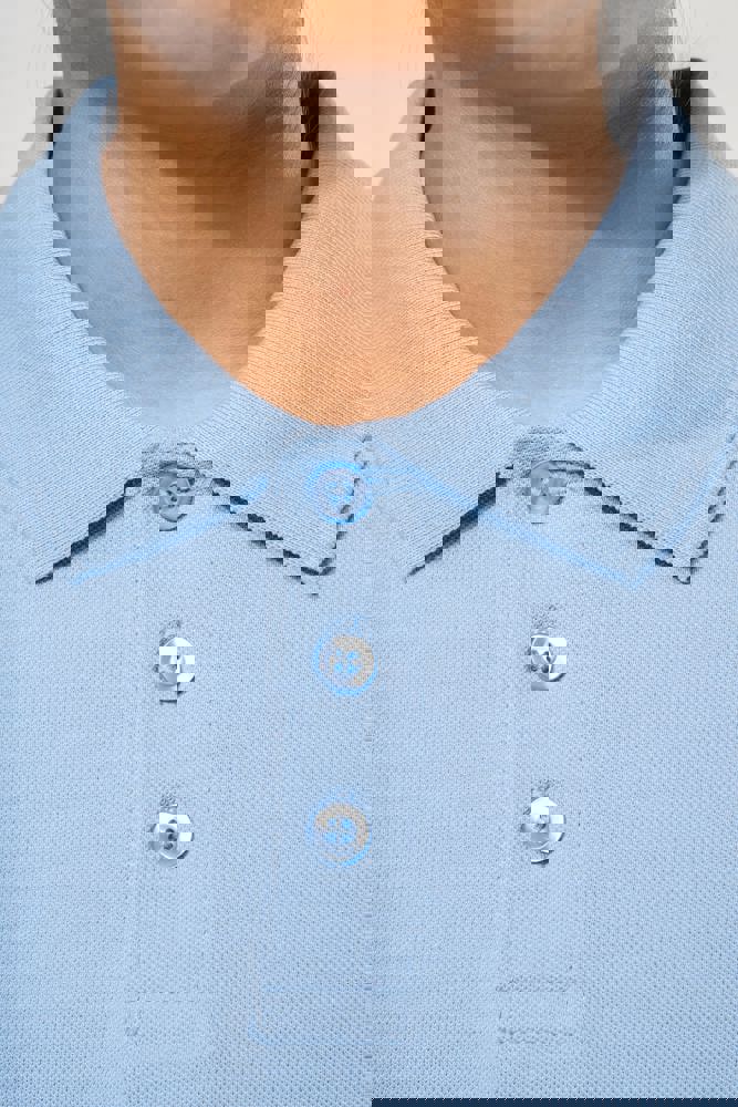 100% katoen piqué. Wasbaar op 60°C. Kraag en mouwuiteinden in rib. Nektape en zijsplitjes in contrastkleur. Knooplijst met 3 knopen. Afwerking met dubbele stiksels aan de onderkant.
