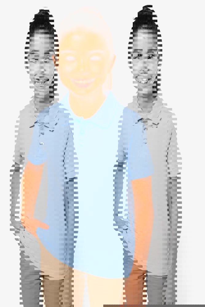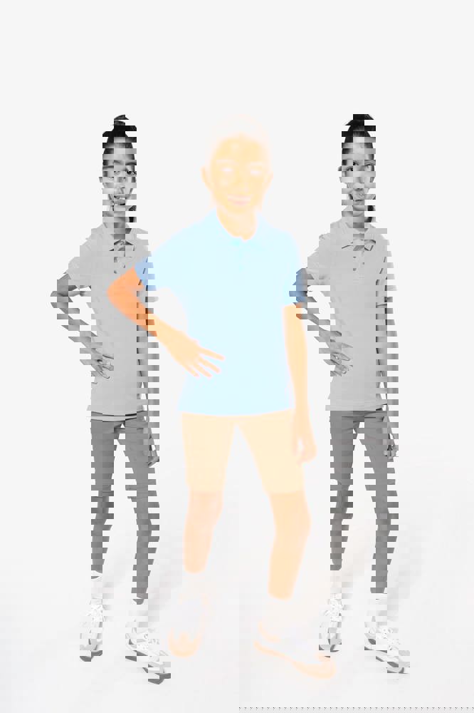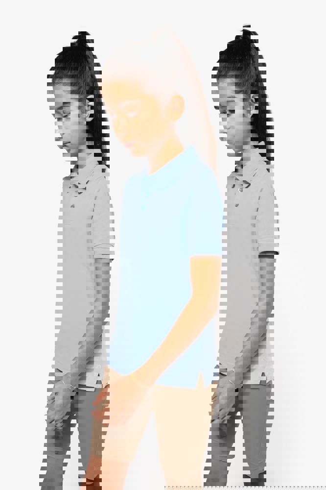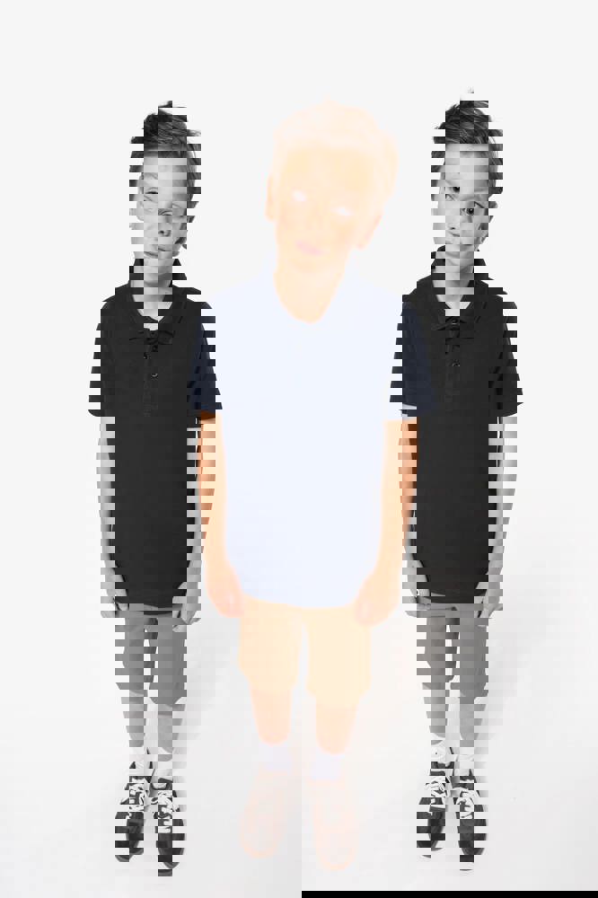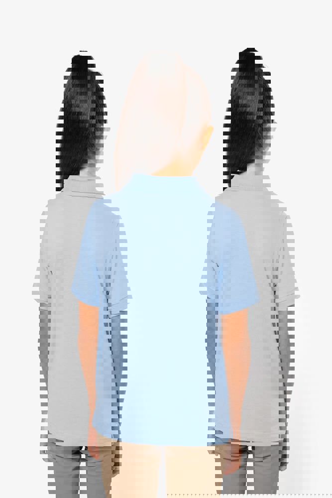 100% katoen piqué. Wasbaar op 60°C. Kraag en mouwuiteinden in rib. Nektape en zijsplitjes in contrastkleur. Knooplijst met 3 knopen. Afwerking met dubbele stiksels aan de onderkant.