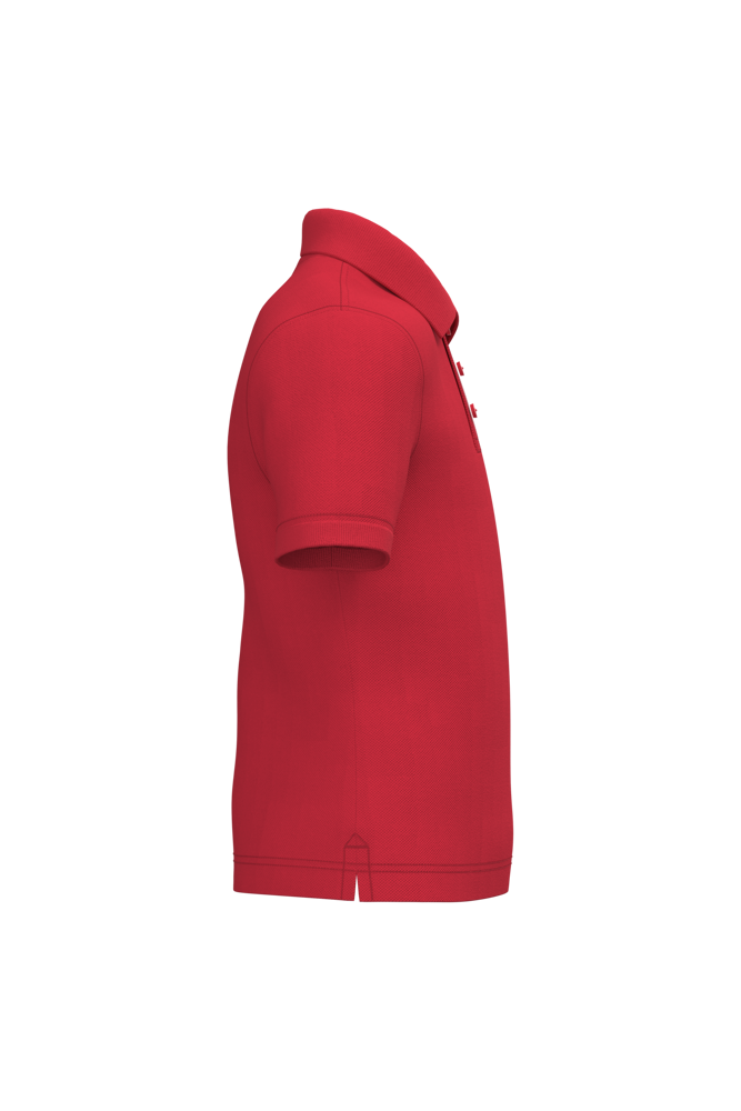 100% katoen piqué. Wasbaar op 60°C. Kraag en mouwuiteinden in rib. Nektape en zijsplitjes in contrastkleur. Knooplijst met 3 knopen. Afwerking met dubbele stiksels aan de onderkant.