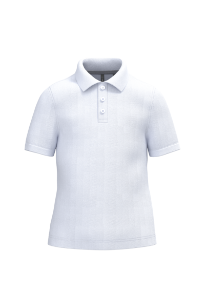 100% katoen piqué. Wasbaar op 60°C. Kraag en mouwuiteinden in rib. Nektape en zijsplitjes in contrastkleur. Knooplijst met 3 knopen. Afwerking met dubbele stiksels aan de onderkant.