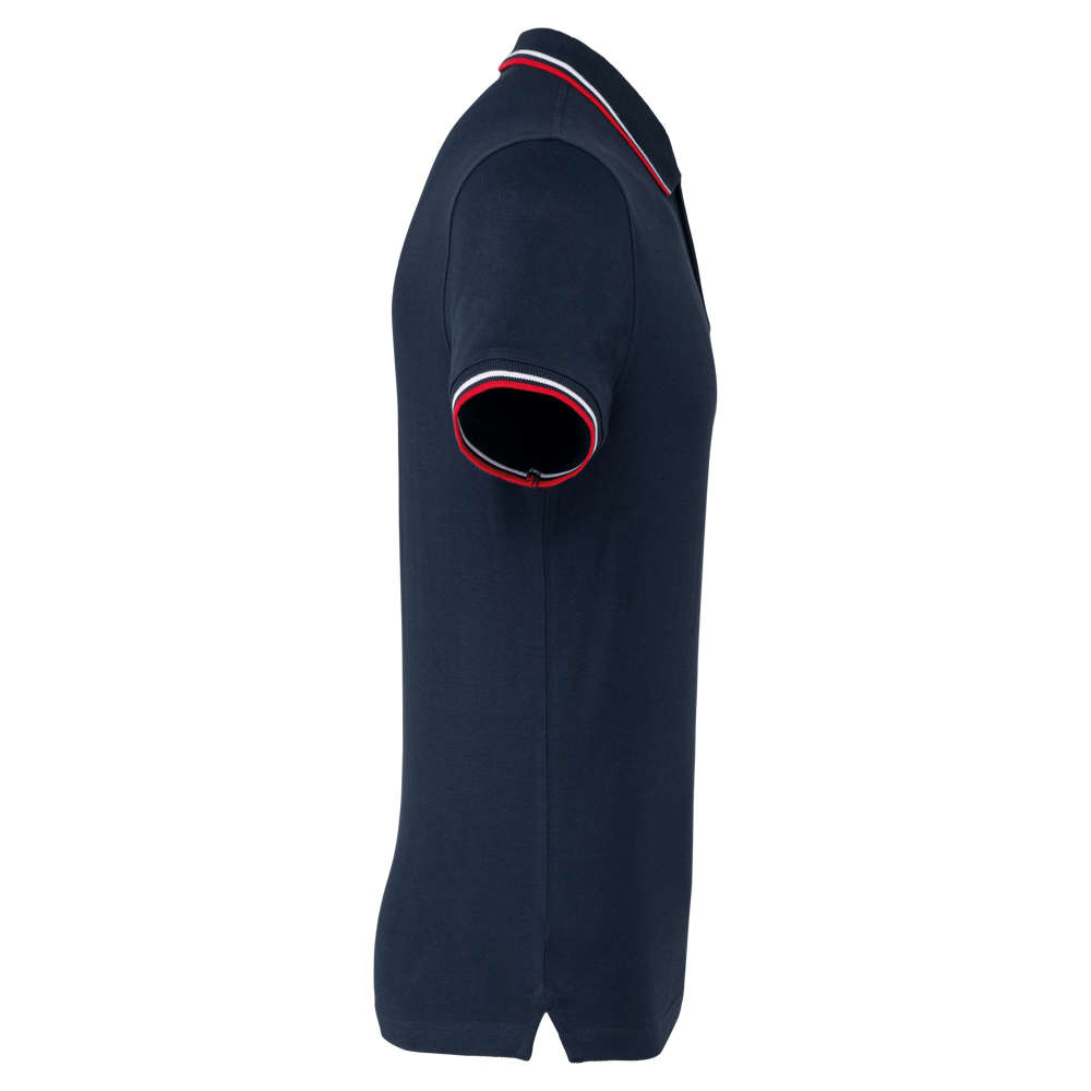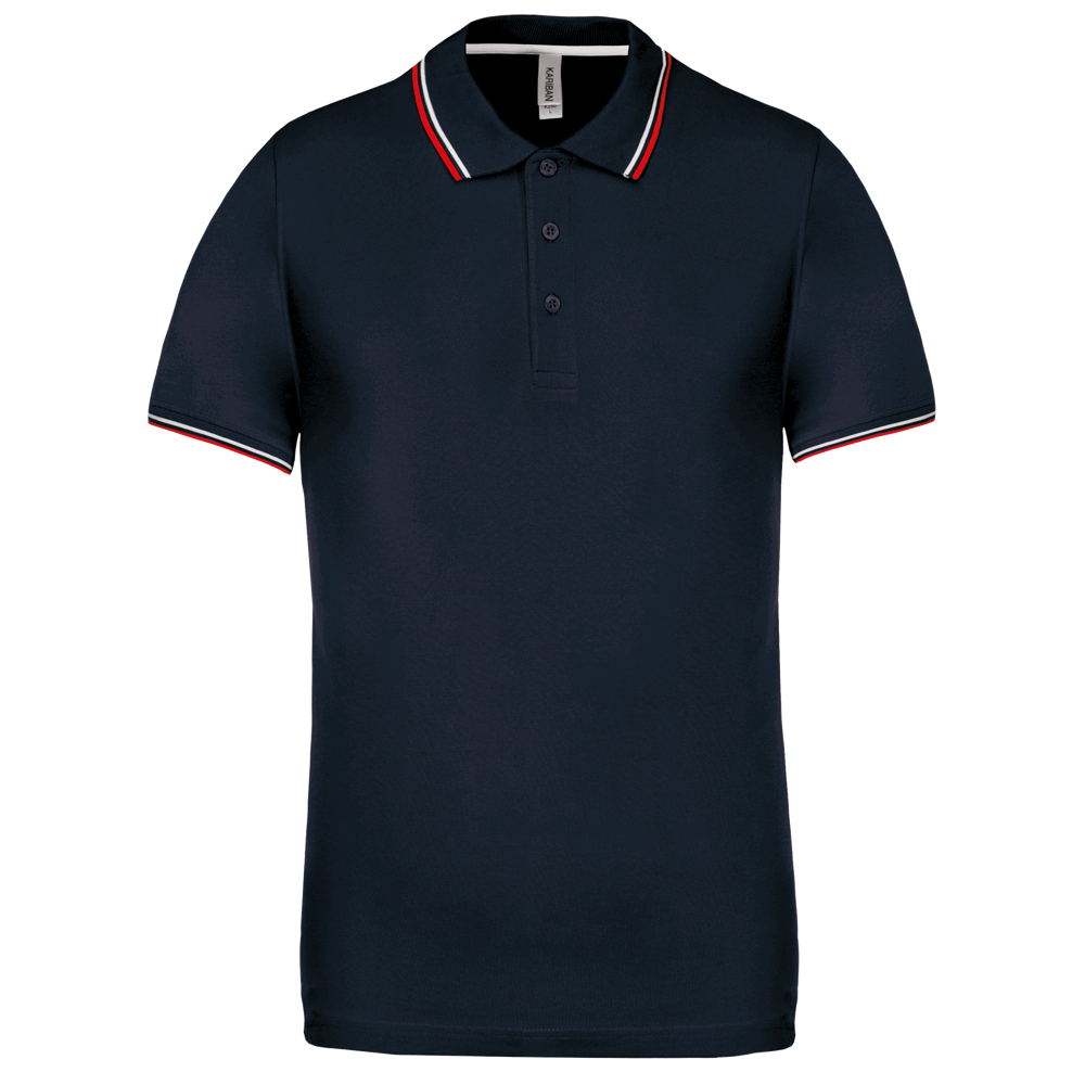 100% katoen piqué. Knooplijst met 3 knopen. Nektape en zijsplitjes in contrastkleur. Afwerking in rib met gecontrasteerde rand aan de kraag en mouwuiteinden. Afgewerkt met dubbele stiksels onderaan.