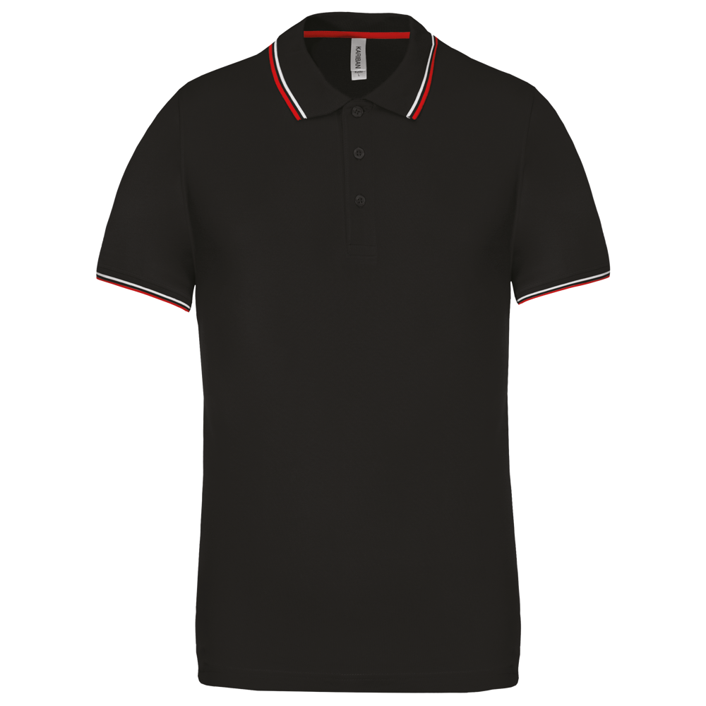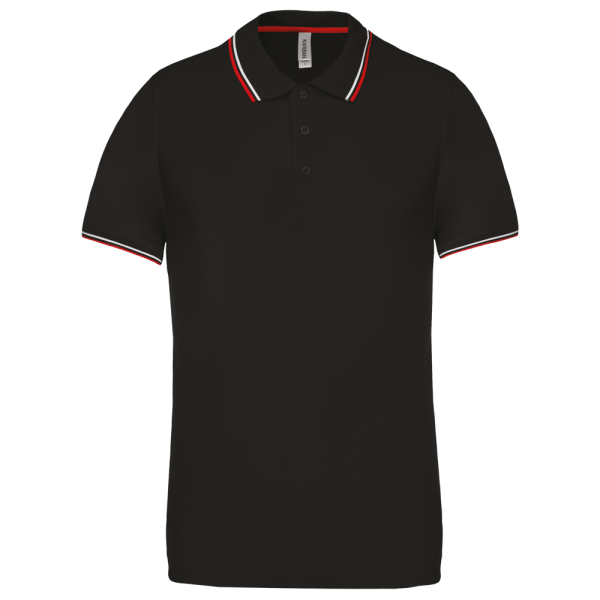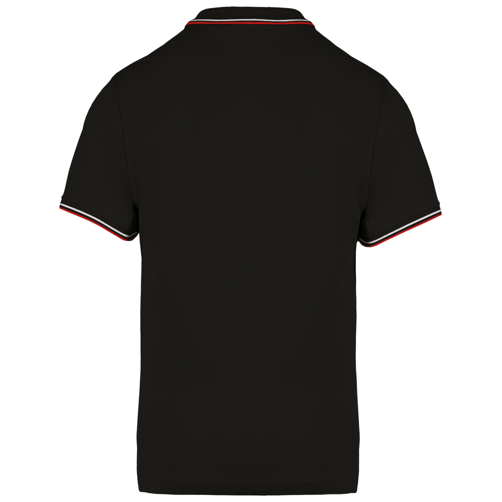100% katoen piqué. Knooplijst met 3 knopen. Nektape en zijsplitjes in contrastkleur. Afwerking in rib met gecontrasteerde rand aan de kraag en mouwuiteinden. Afgewerkt met dubbele stiksels onderaan.