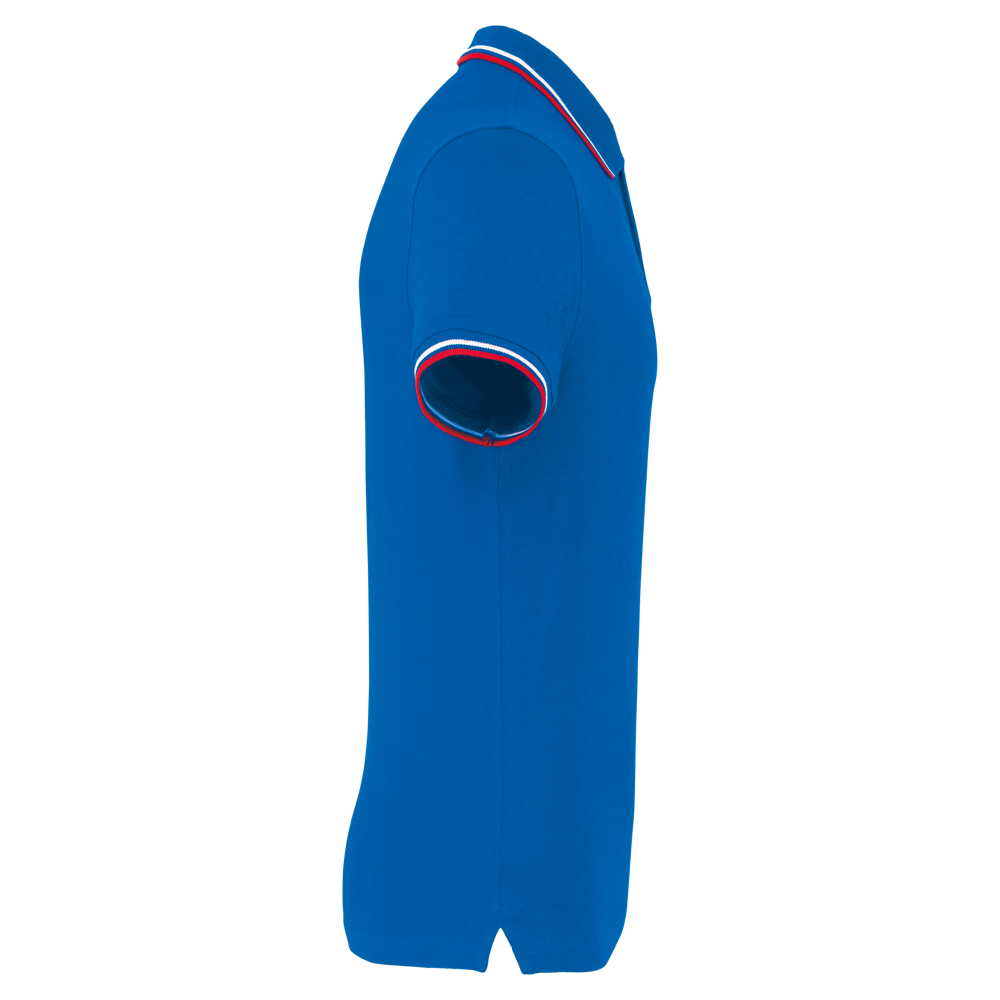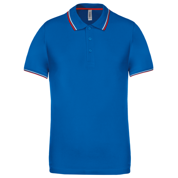 100% katoen piqué. Knooplijst met 3 knopen. Nektape en zijsplitjes in contrastkleur. Afwerking in rib met gecontrasteerde rand aan de kraag en mouwuiteinden. Afgewerkt met dubbele stiksels onderaan.