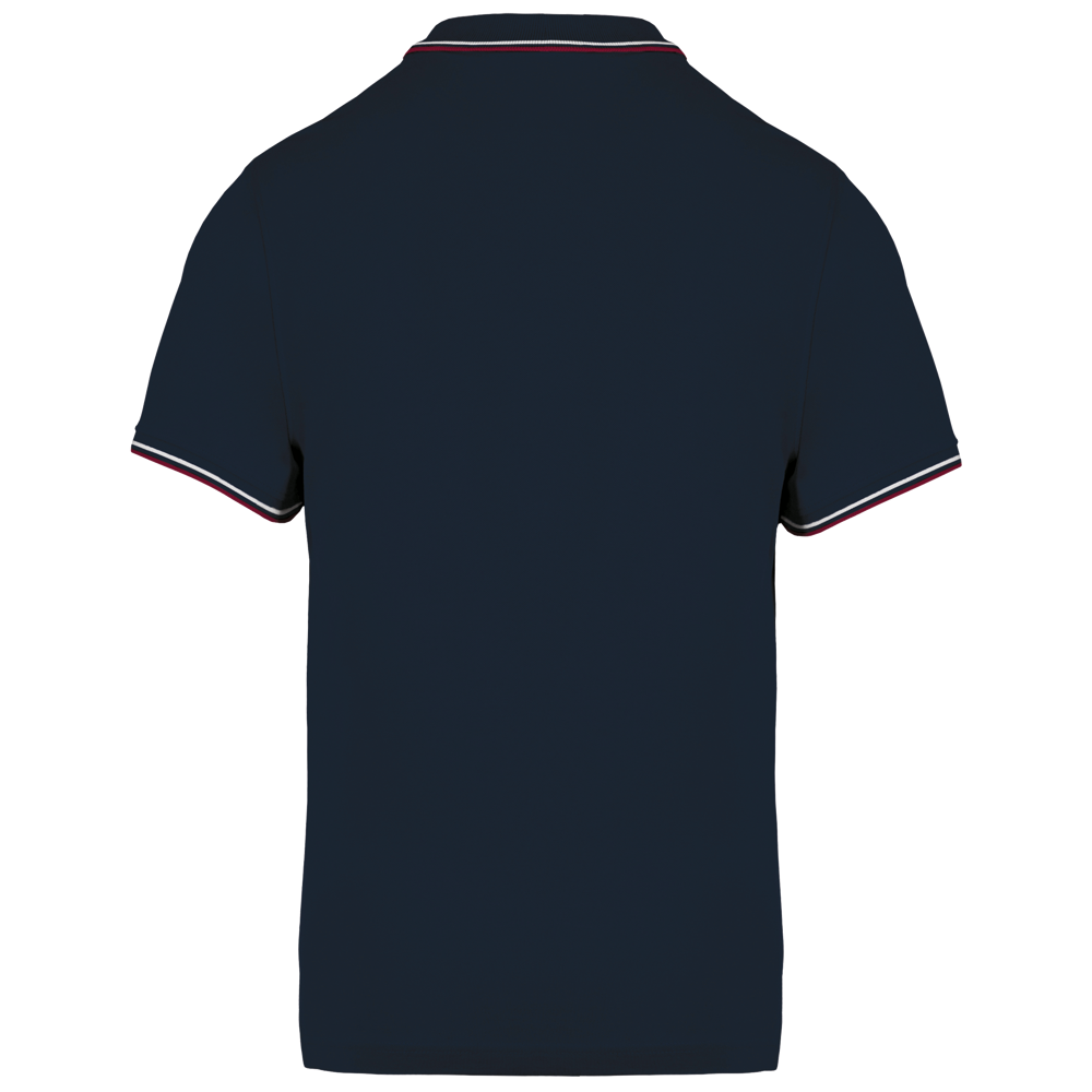 100% katoen piqué. Knooplijst met 3 knopen. Nektape en zijsplitjes in contrastkleur. Afwerking in rib met gecontrasteerde rand aan de kraag en mouwuiteinden. Afgewerkt met dubbele stiksels onderaan.