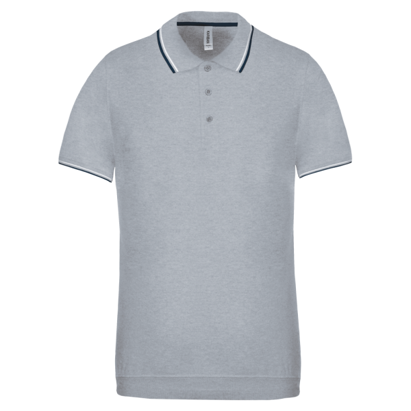 100% katoen piqué. Knooplijst met 3 knopen. Nektape en zijsplitjes in contrastkleur. Afwerking in rib met gecontrasteerde rand aan de kraag en mouwuiteinden. Afgewerkt met dubbele stiksels onderaan.