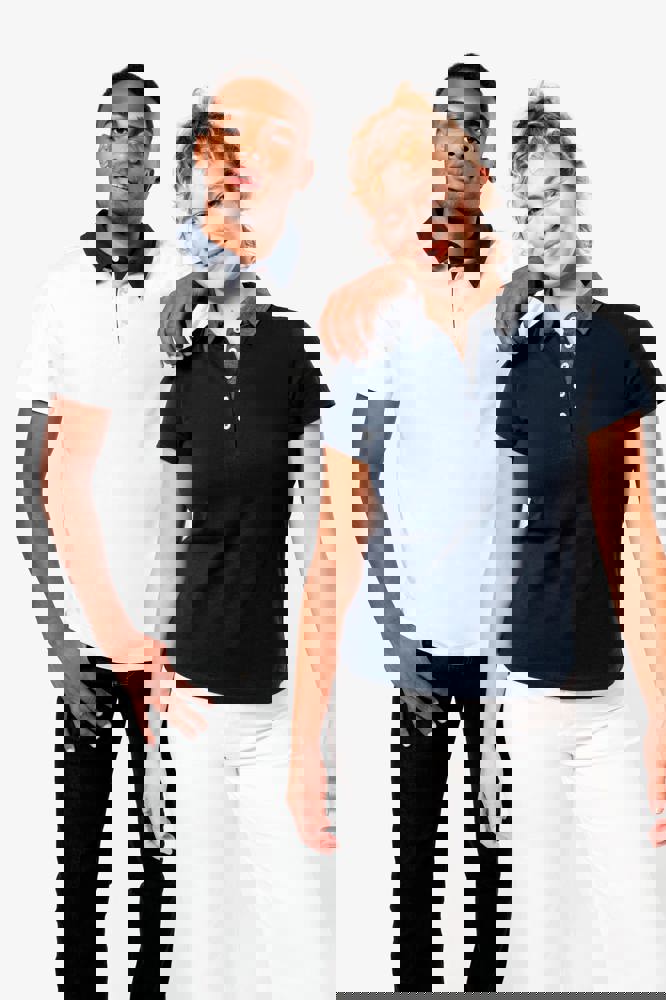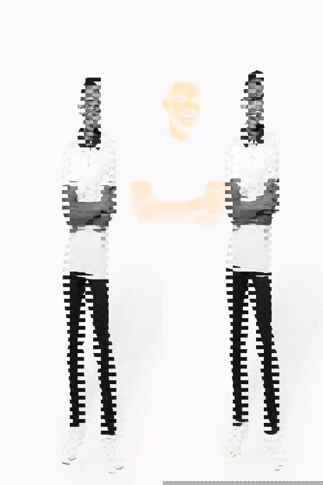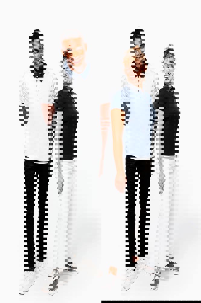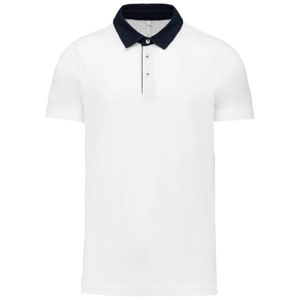 100% katoen (Dark Grey Heather: 65% polyester / 35% katoen). Gekamd katoen enzymgewassen. Contrasterende overhemdkraag en knooplijst aan de binnenzijde met 3 witte parelmoer knopen. Dubbel stiksel aan mouwuiteinden en onderkant.