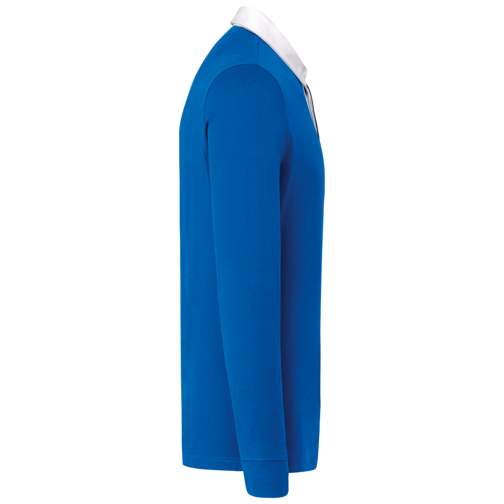 100% Gekamd katoen. Voorgekrompen gekamd jerseykatoen. Kraag in contrasterend wit twillkatoen (behalve de kleuren Red en Dark Grey, die een zwarte kraag hebben). Lijst met 3 knopen. Mouwuiteinden in 1x1 ribboord. Afwerking met visgraatmotief op de binnenzijde van de kraag en aan de zijsplitten.